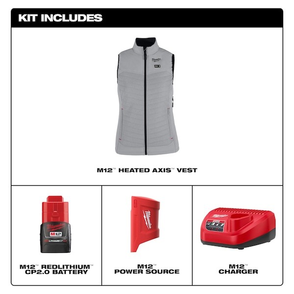 Milwaukee Tool F300e-21L Axis Heated Vest, Polyester, 2 To 8 Hours Heating