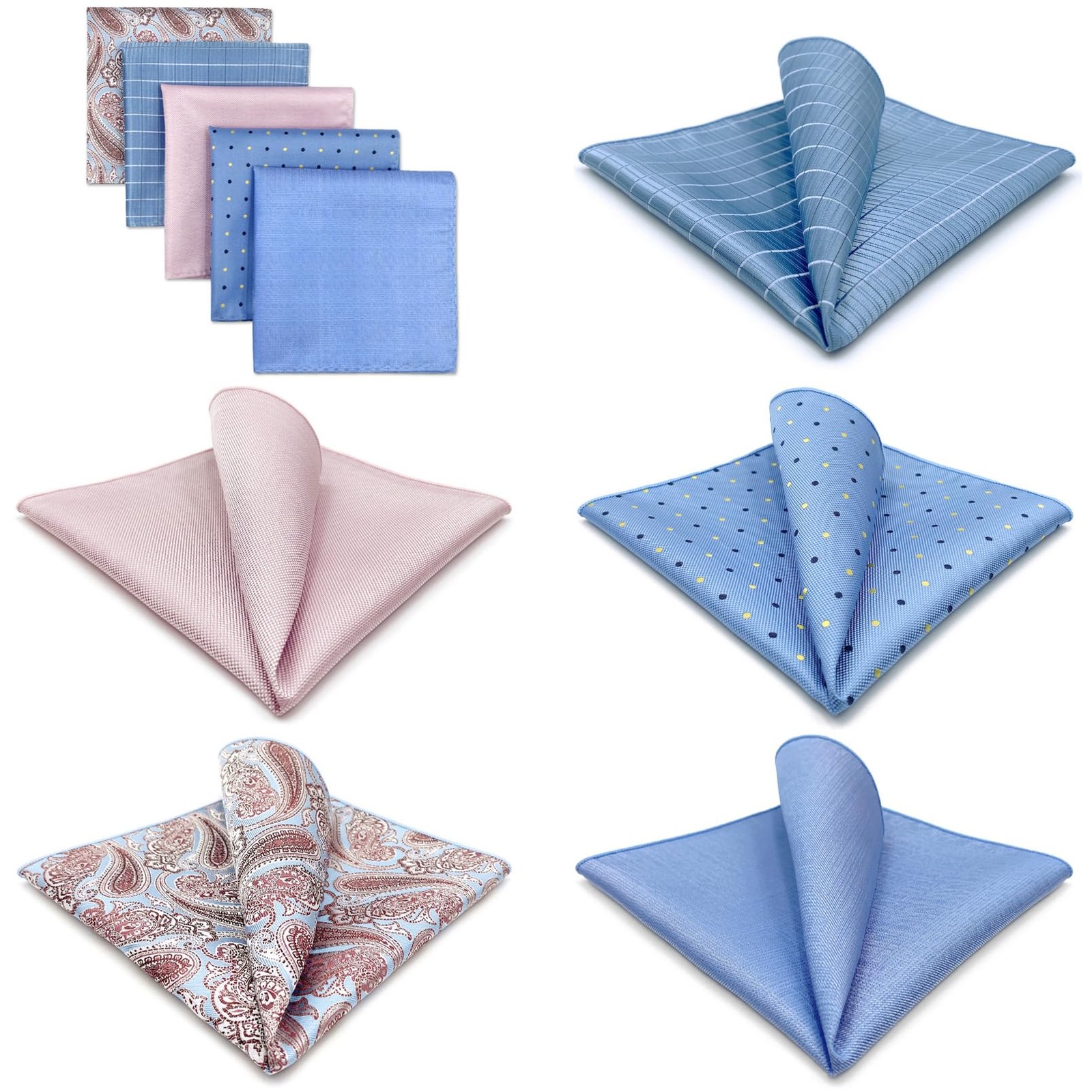 как выглядит SHLAX 5 Pieces Assorted Mens Silk Pocket Square Handkerchiefs Set Lot 35 фото