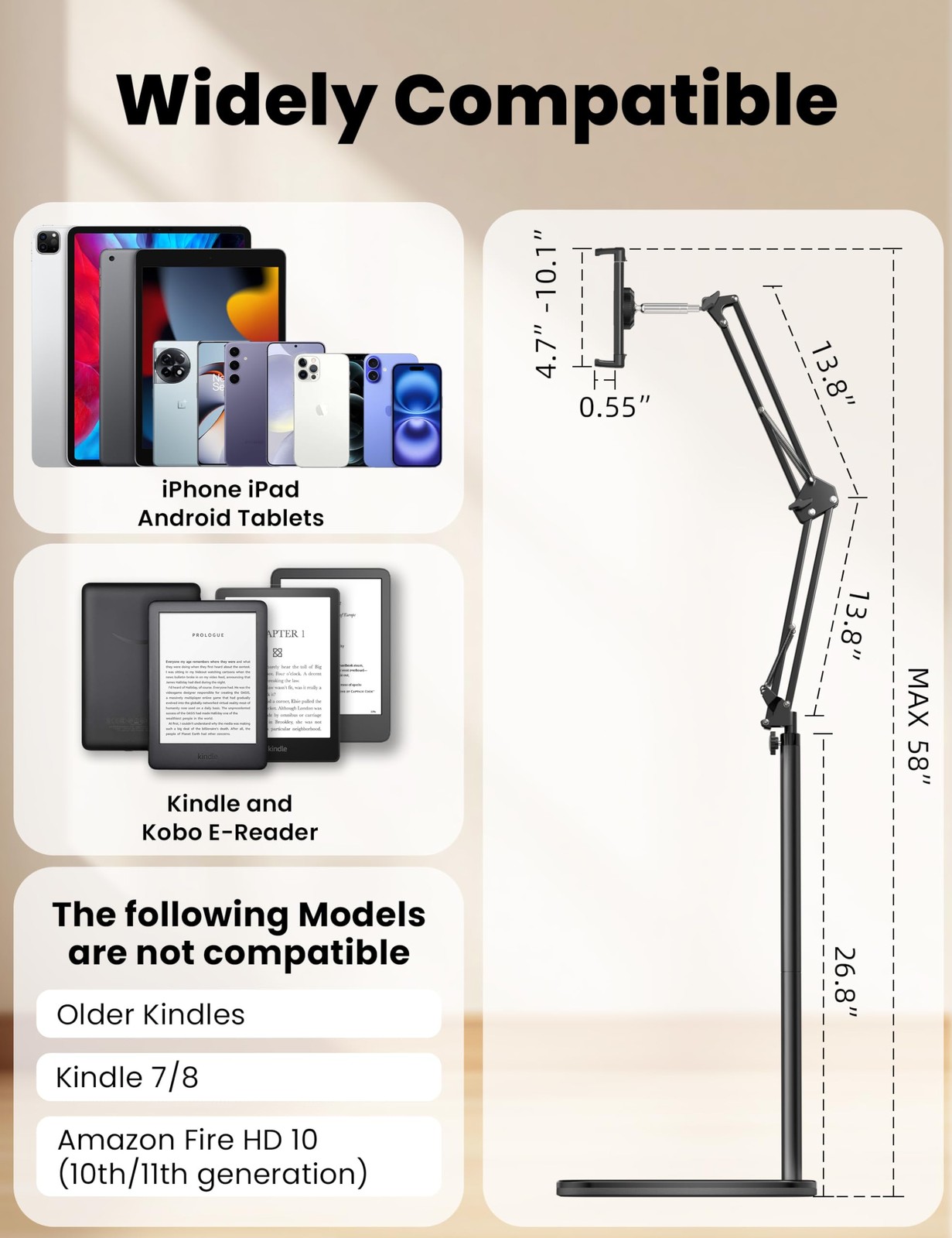 Floor Stand Kindle Holder with Remote Page Turner for Reading in Bed, Tablet ...
