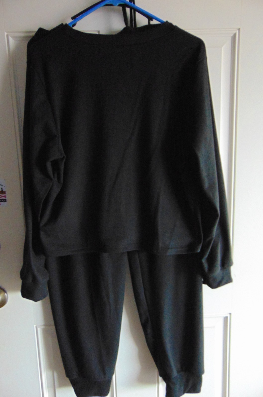 как выглядит Womens 2 Piece Lounge Set BLACK Long Sleeve Drawstring Comfy XL NWOT фото