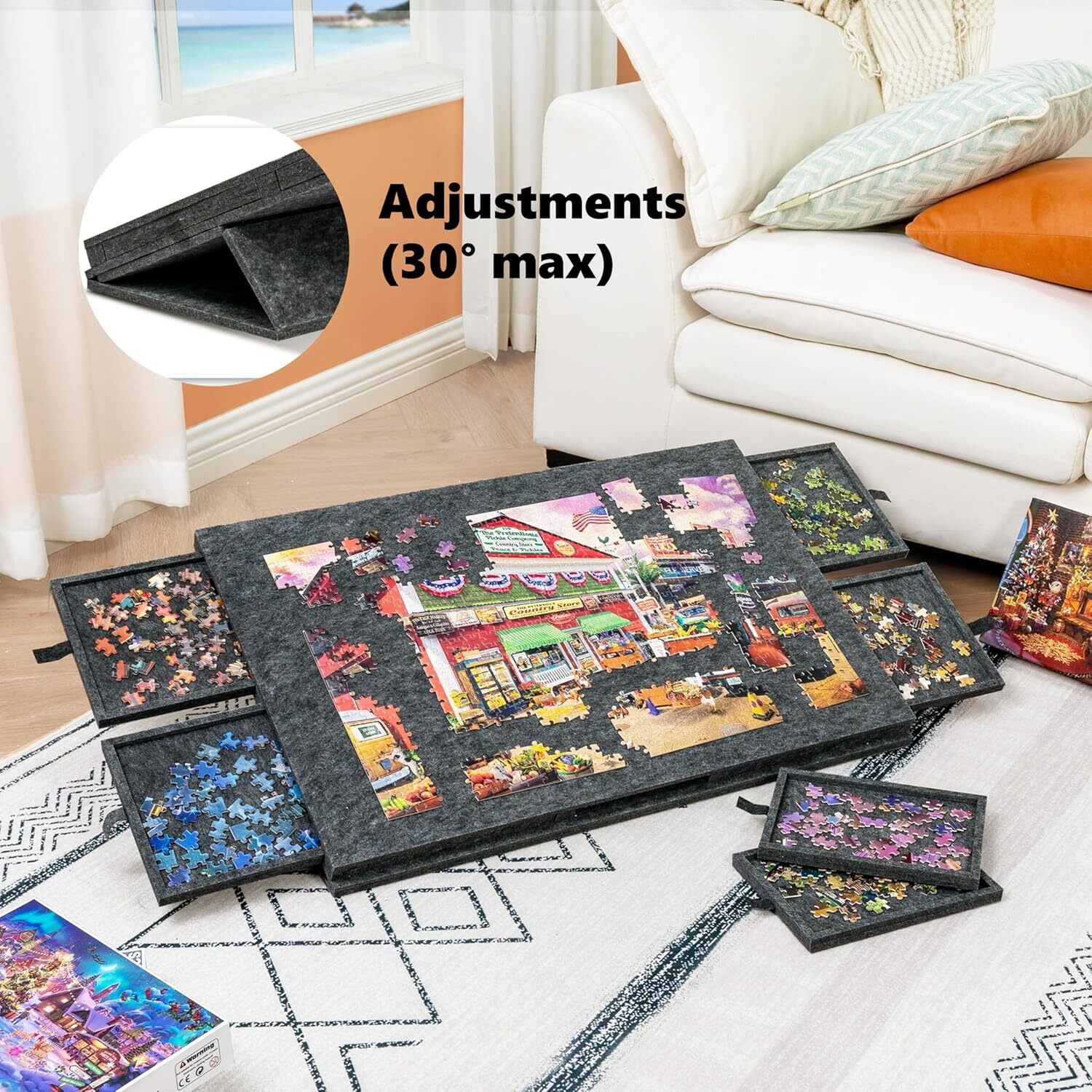 1000 Pieces Portable Jigsaw Puzzle Board with 6 Drawers Trays Tilting Puzzle