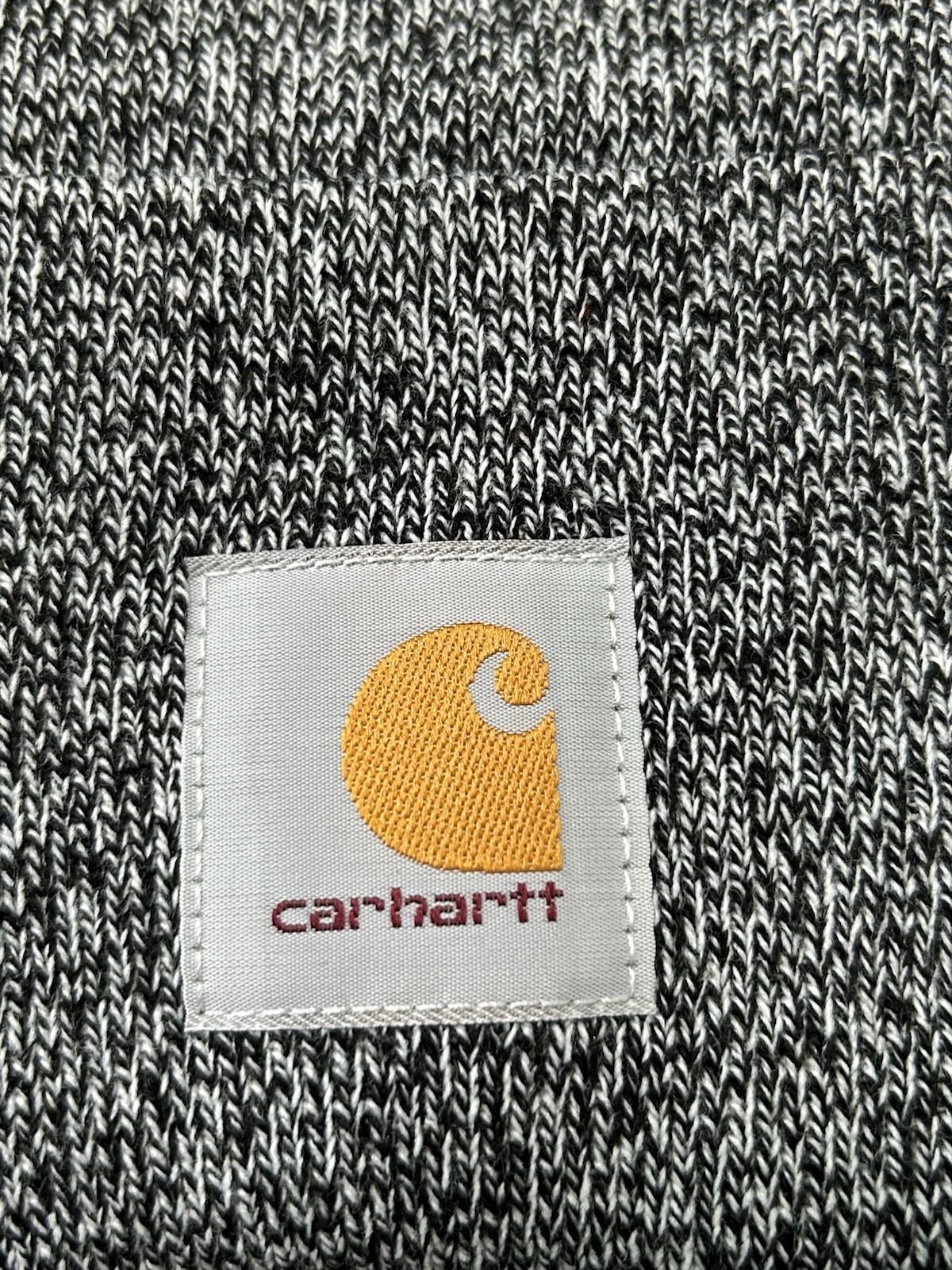 как выглядит NWT Carhartt Beanie Unisex A18-019 Black/White Heather Knit Cuffed Beanie Logo фото
