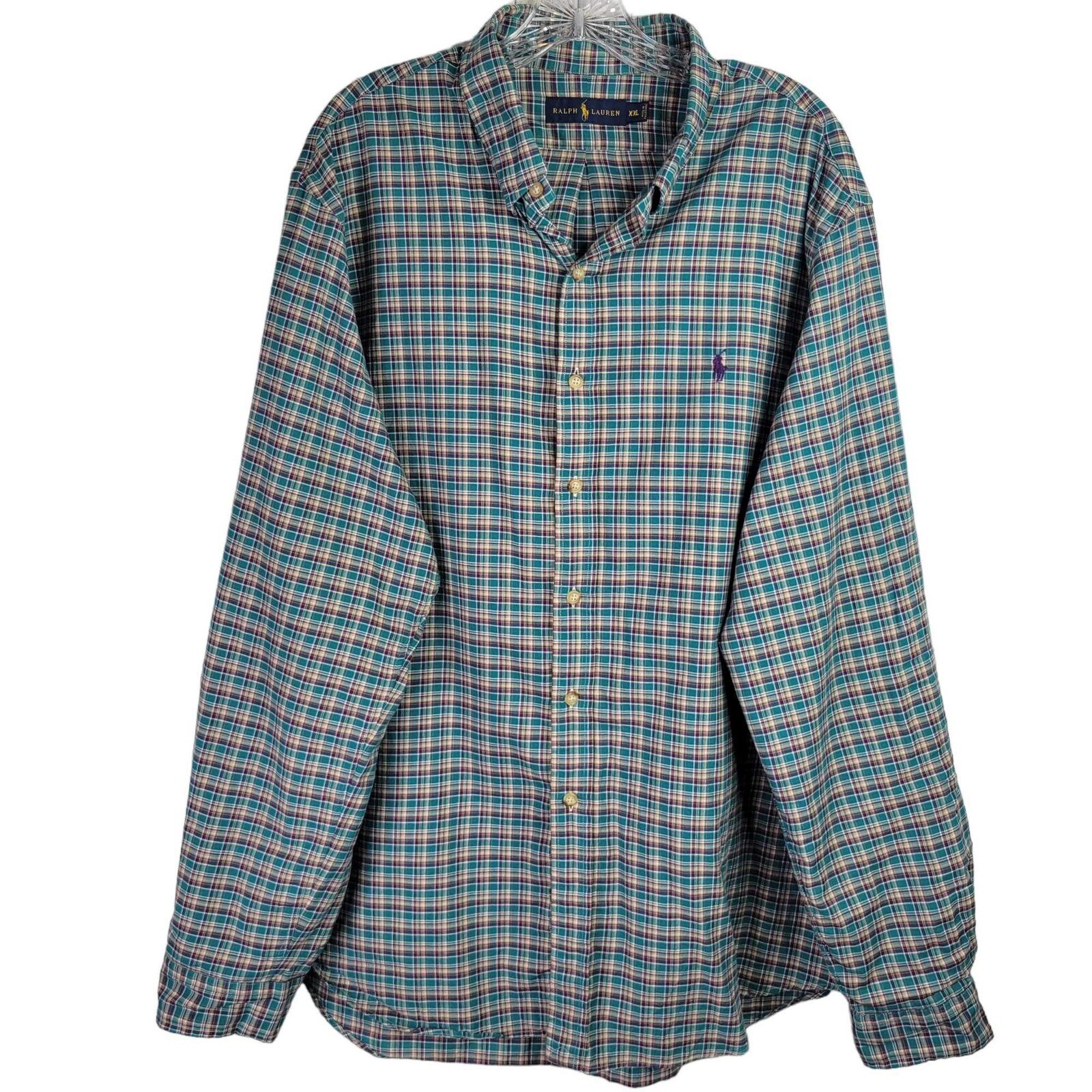 как выглядит Polo Ralph Lauren Shirt Oxford Button Down Mens L Large Plaid Blake Vintage фото