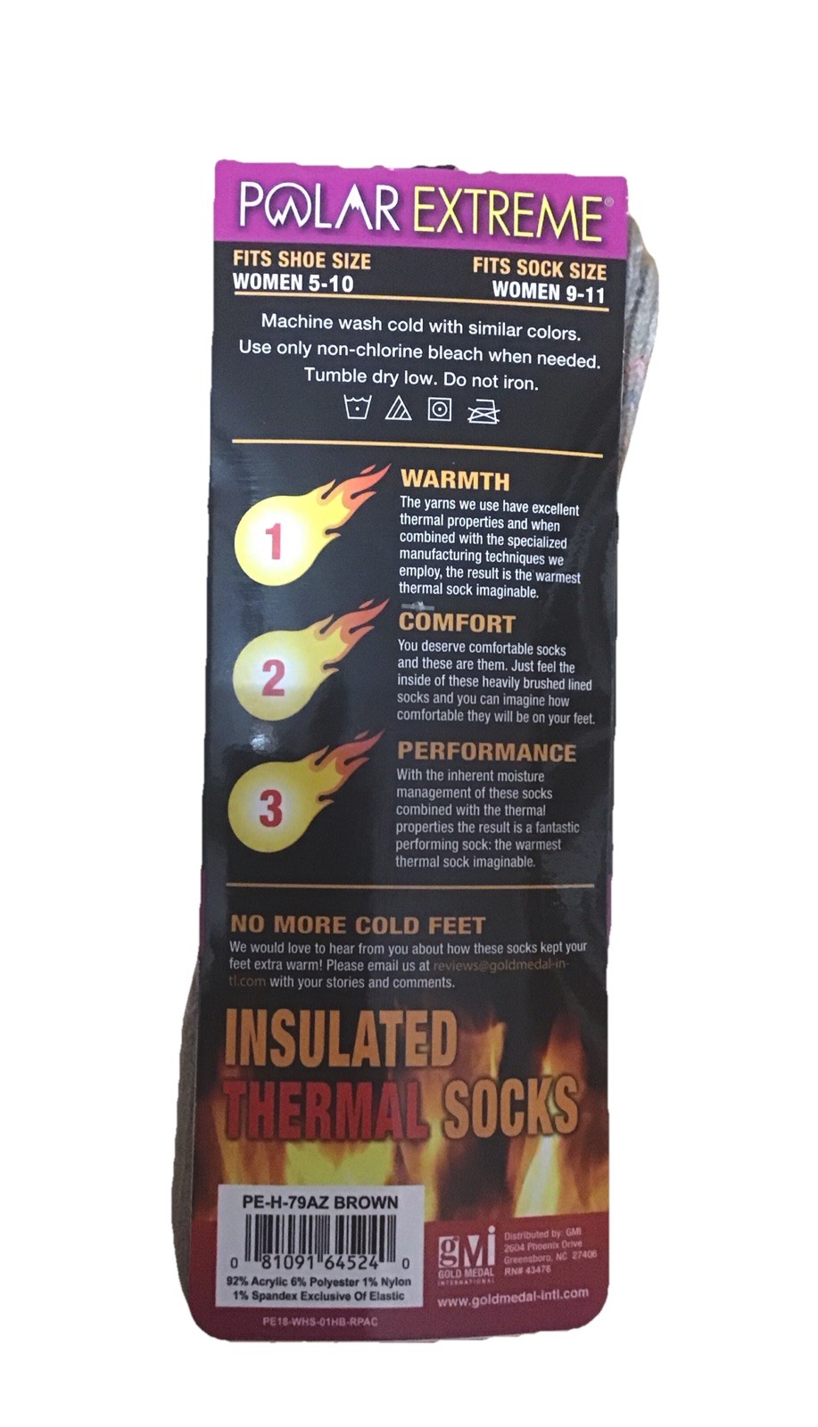 Polar Extreme Insul Moisture Wicking Cushioned Thermal Wom Crew Socks, SZ 5- 10