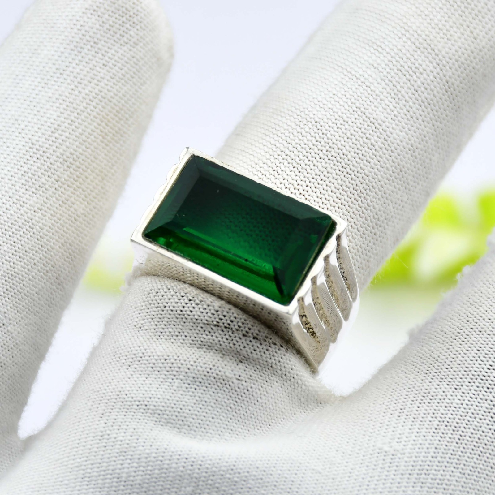 Men's Emerald 925 Solid Sterling Silver Handmade Green Emerald Silver Ring Gift