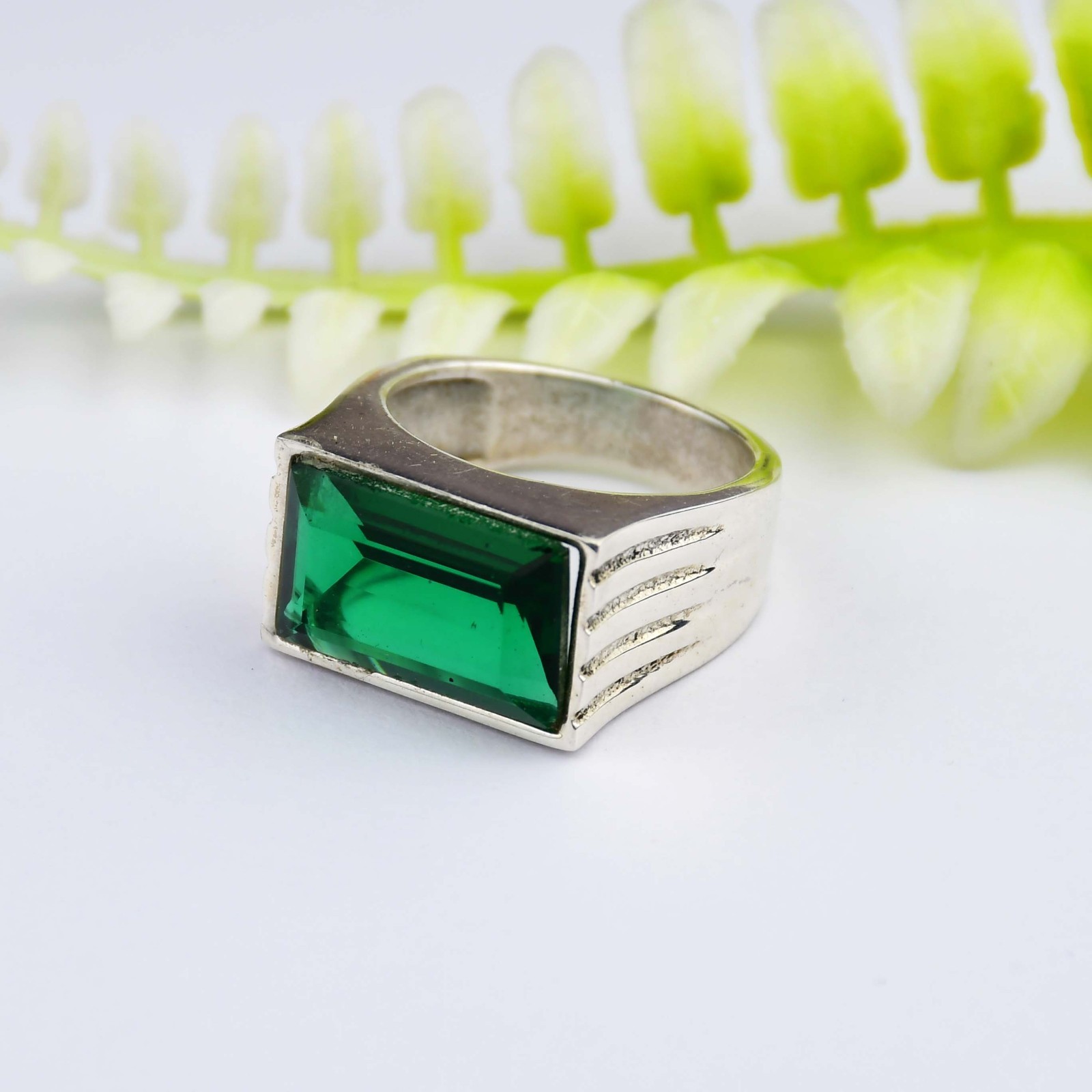 как выглядит Mens Emerald 925 Solid Sterling Silver Handmade Green Emerald Silver Ring Gift фото
