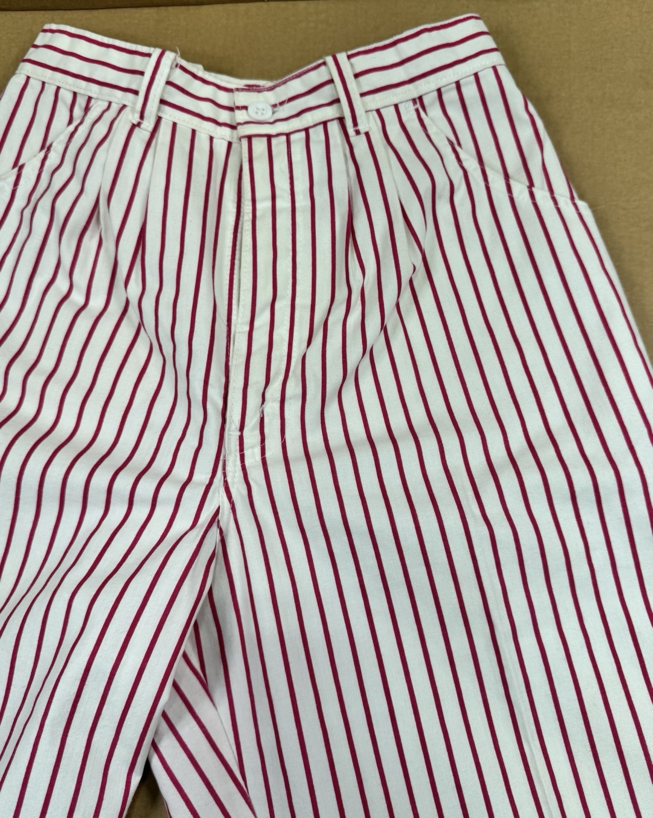 Vintage Red White Pin Striped Women s Pants High Waist Retro 33 waist