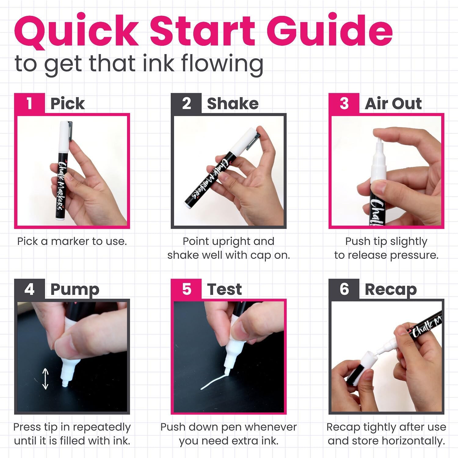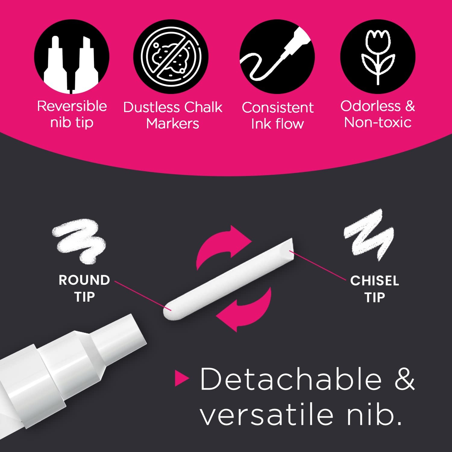 White Chalk Markers Fine Tip 4 Pack 3mm - Wet Dry Erase Chalk Pens for