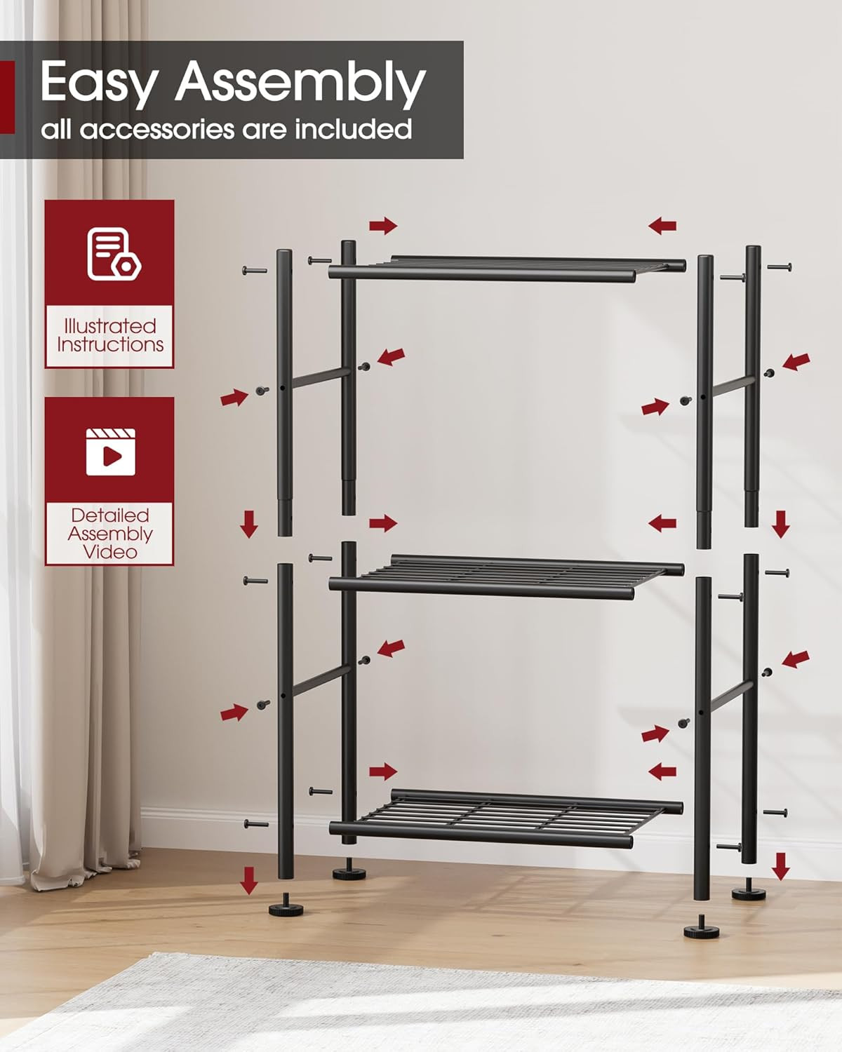 Assembly Instructions Description: The storage shelf is designed for hassle-free assembly, providin