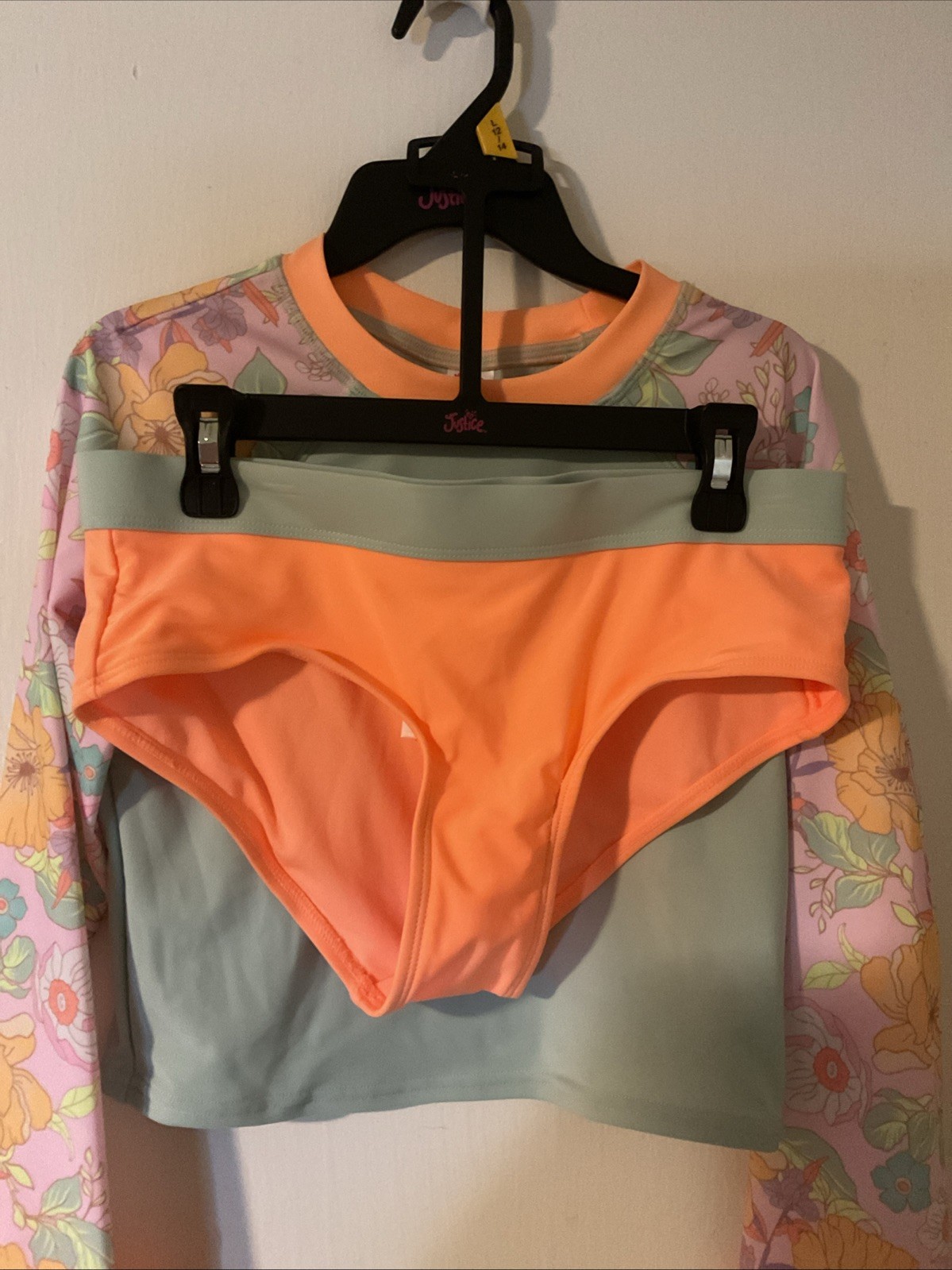 Justice Girls 2 PC Rash Guard Long Sleeve Hipster Coral 12/14 Large