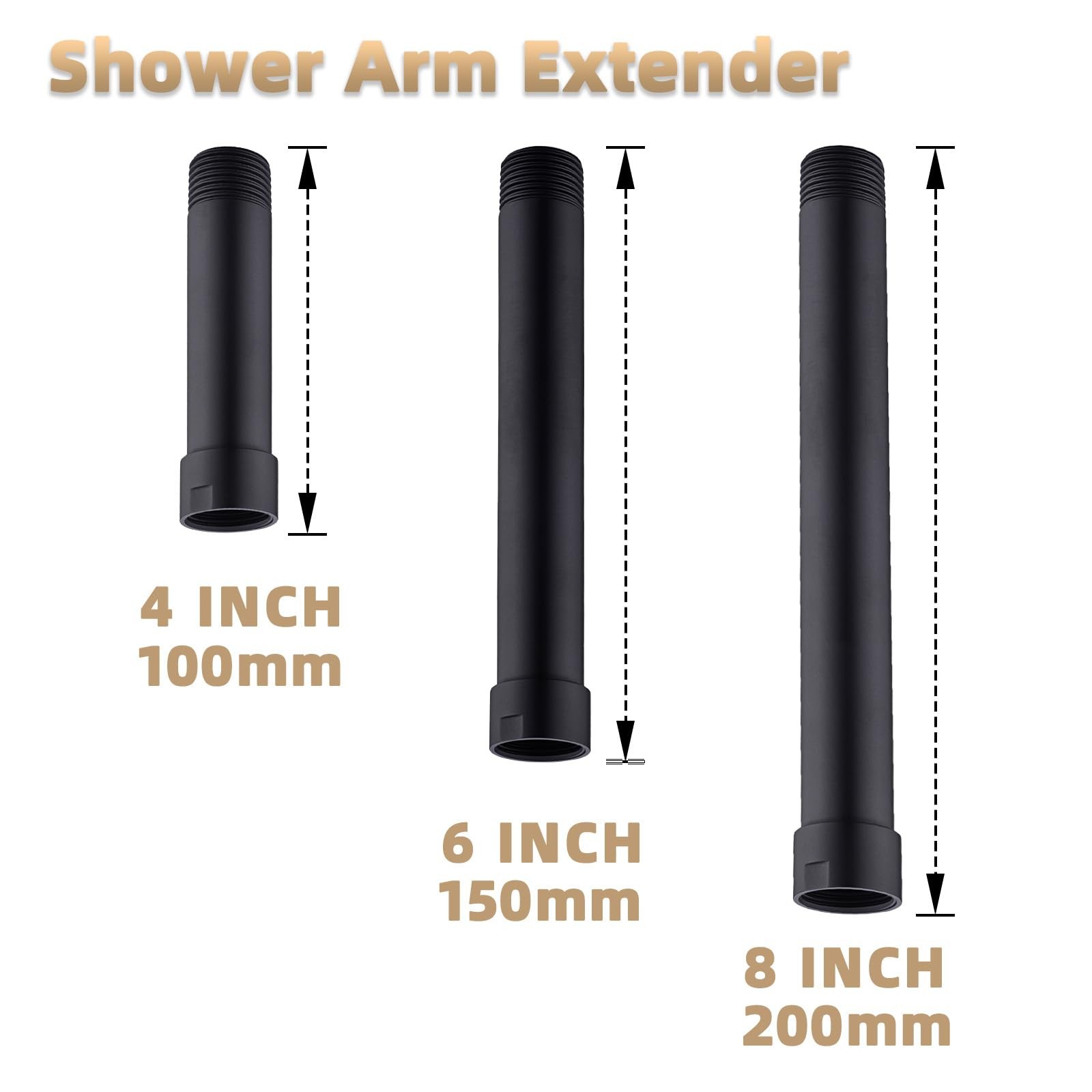 Black Shower Head Extension Arm 8 Inches, Shower Arm Extender for Rain and Ha...