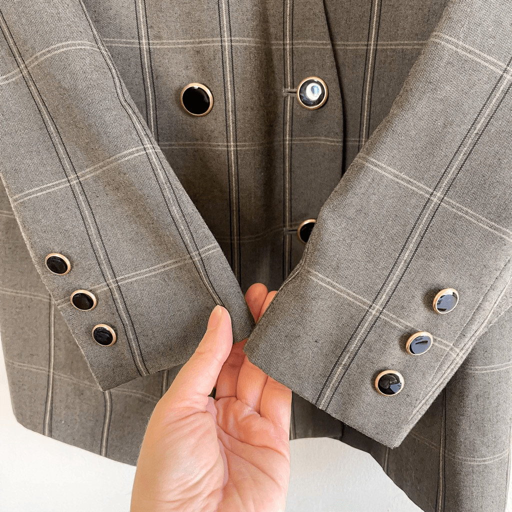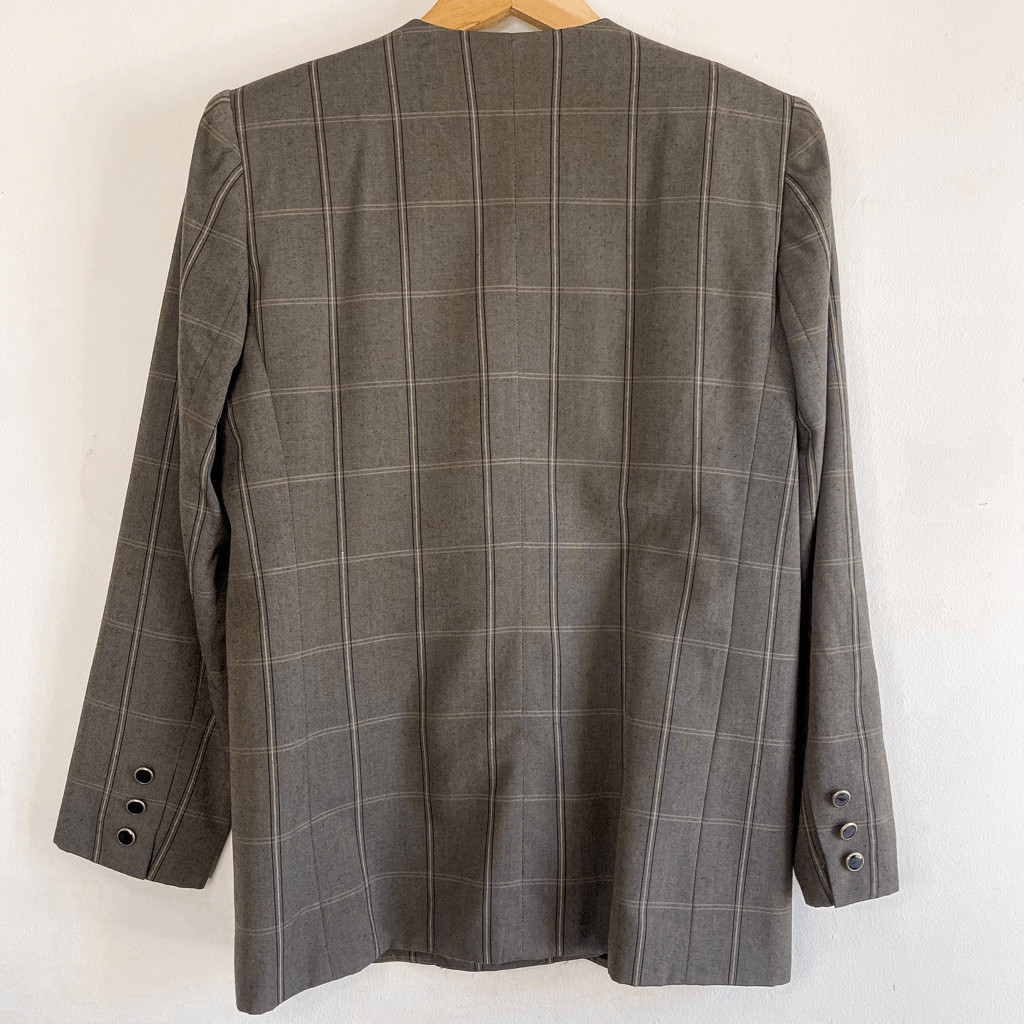 Vintage Gray Plaid Double Breasted Blazer Size 10