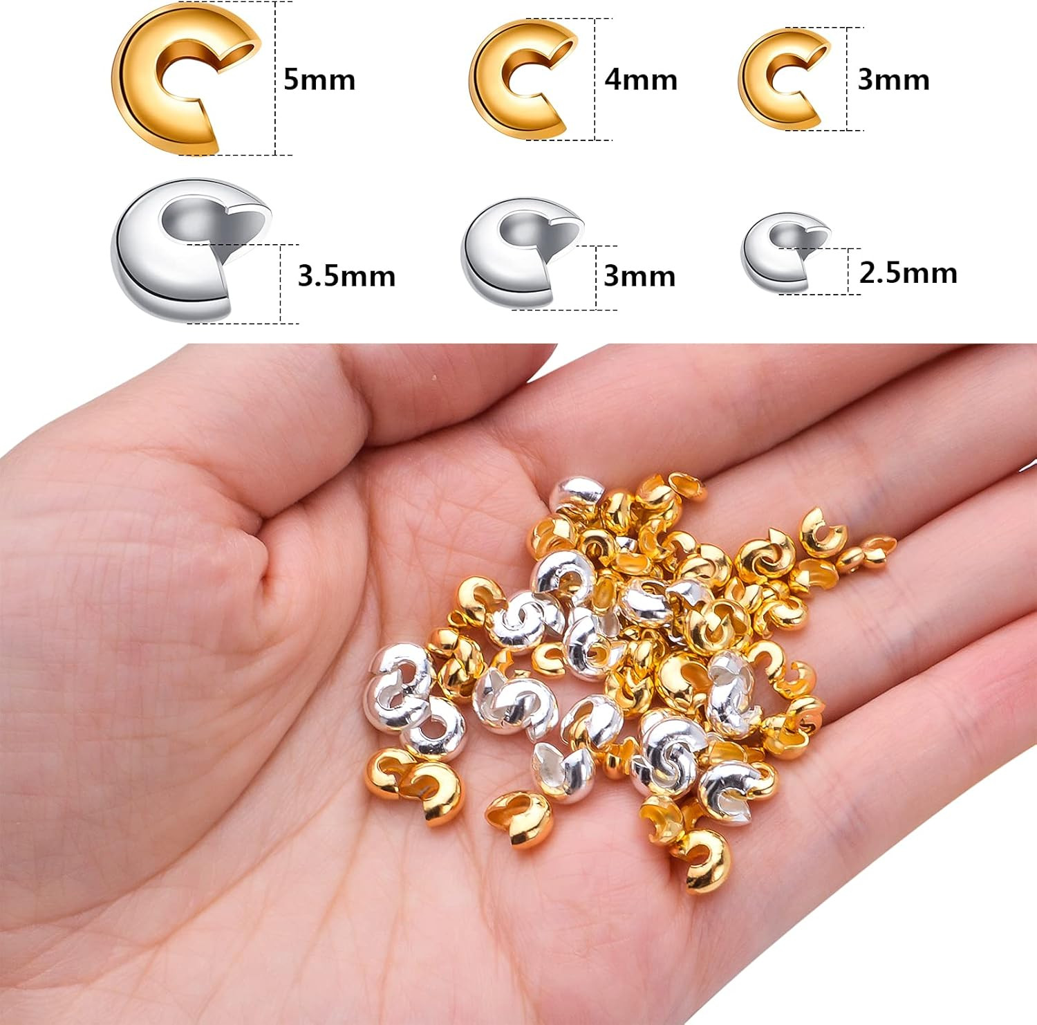 600Pcs 3Mm/4Mm/5Mm Crimp Bead Knot Covers Half round Open Crimp Beads Crimp Bead