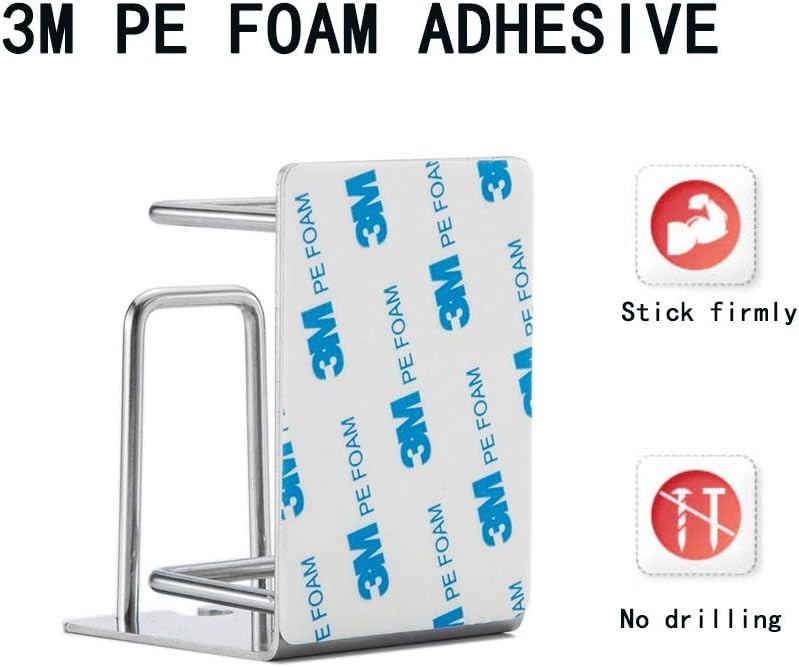Stainless Steel Adhesive Wall Mounted Toothbrush Holder, 3 in Silver 2 Pack