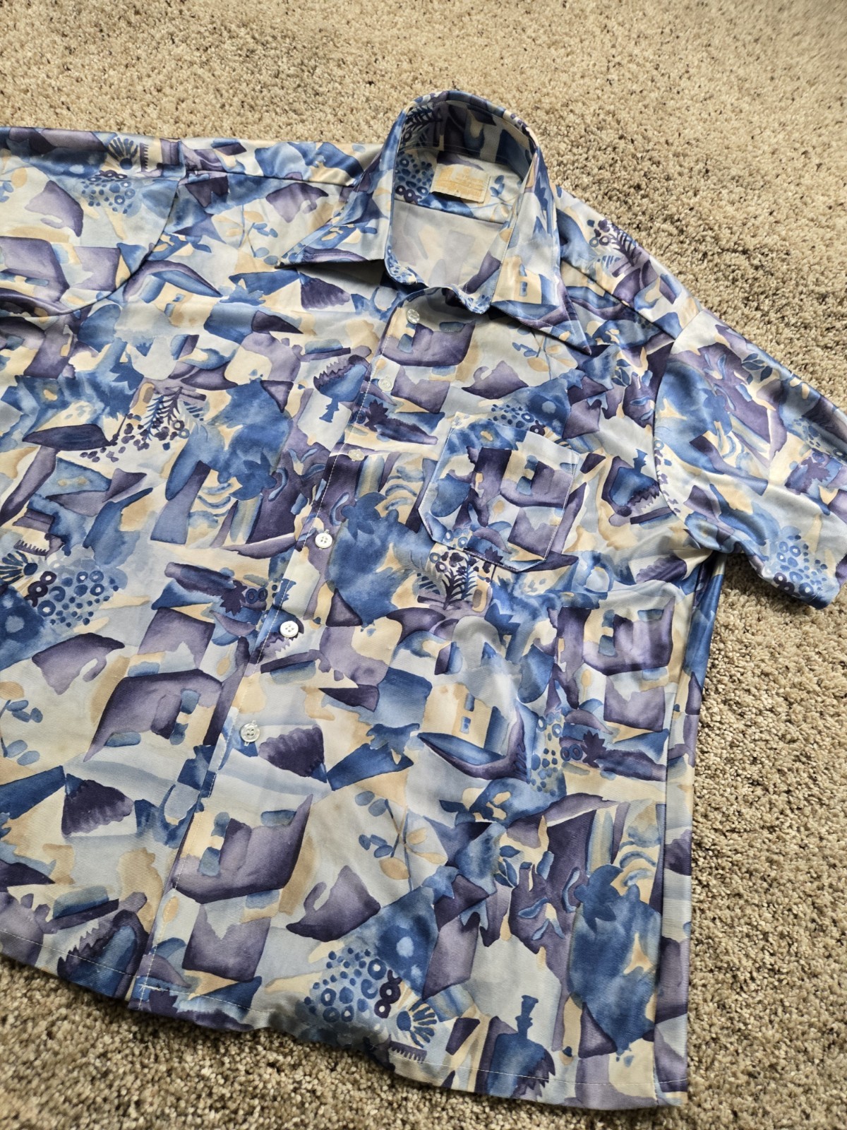 как выглядит Vintage Sears Kings Road Shirt XL Mens Abstract Print Point Collar 70s Disco фото