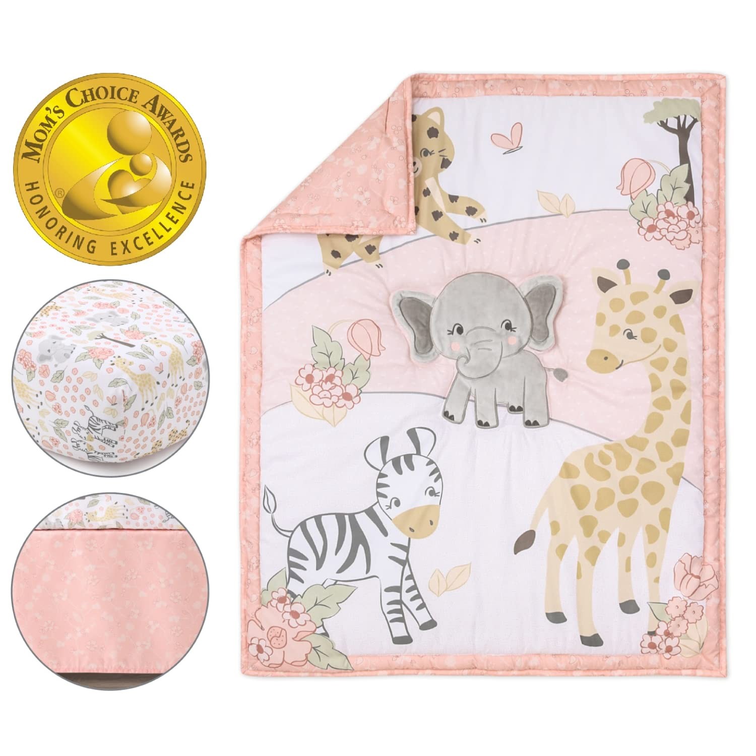 как выглядит 3 Piece Baby Crib Bedding Set for Girls - Newborn, Infant Toddler Nursery B... фото