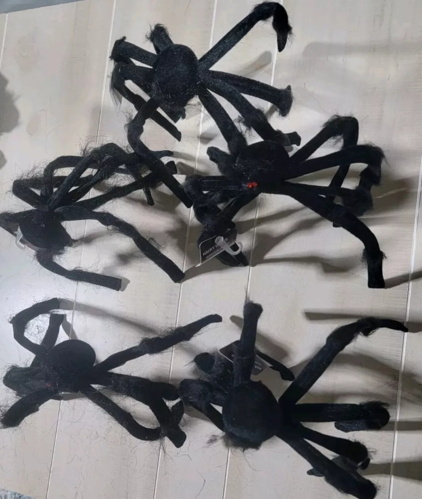 • Set of 5 Hairy Black Spiders with red eyes Spider Halloween Party Scary Decor