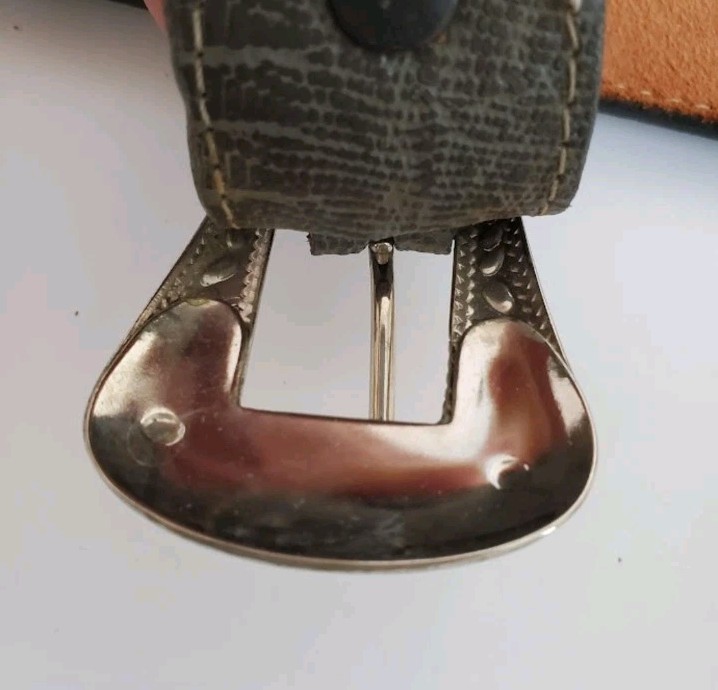 как выглядит VTG Gray Lizard Grain Cowhide Leather Ranger Belt Western 34 Silver Buckle USA фото