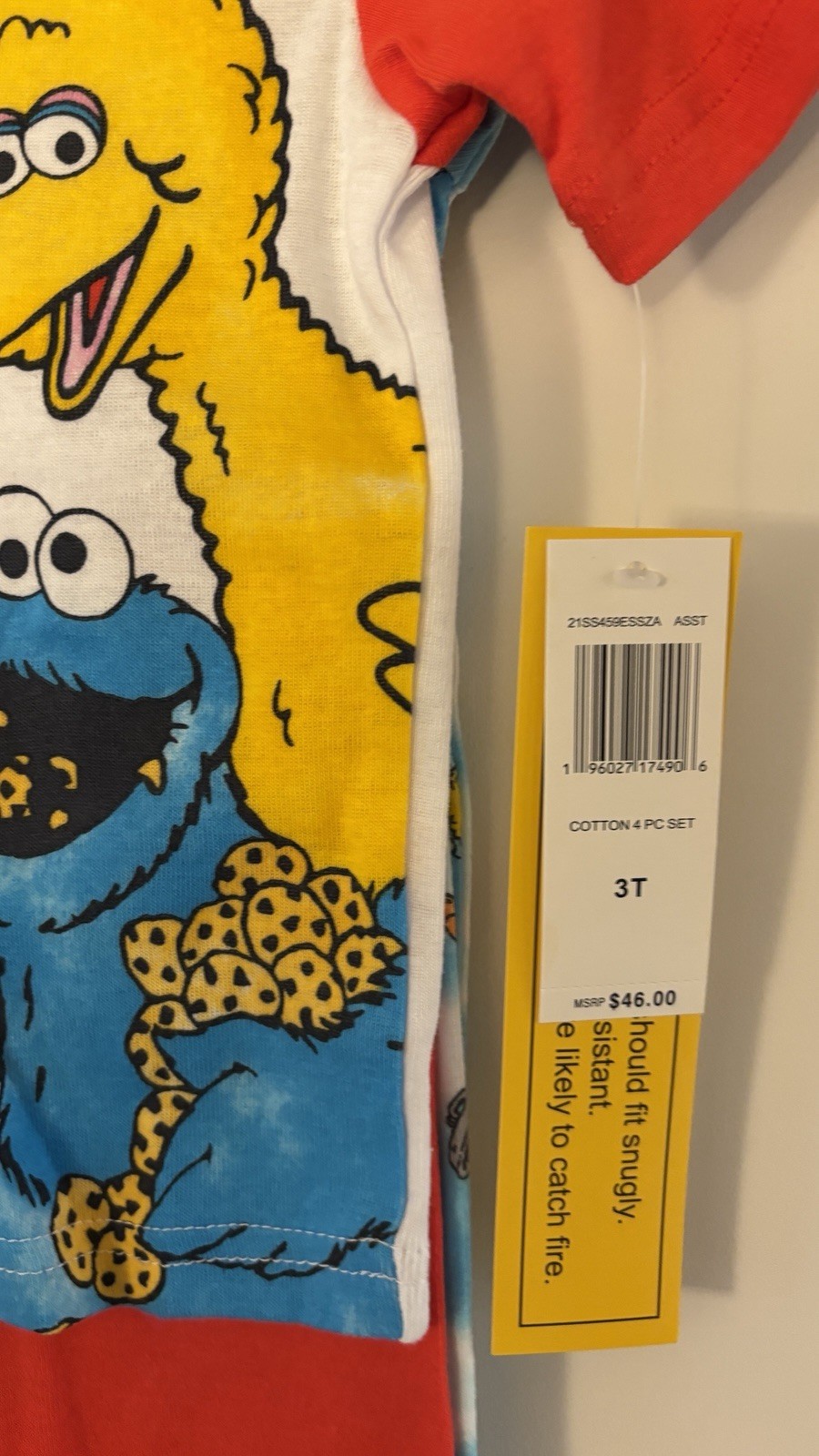 Brand New Set of Two Sesame Street Toddler Pajamas 3T 100 Cotton