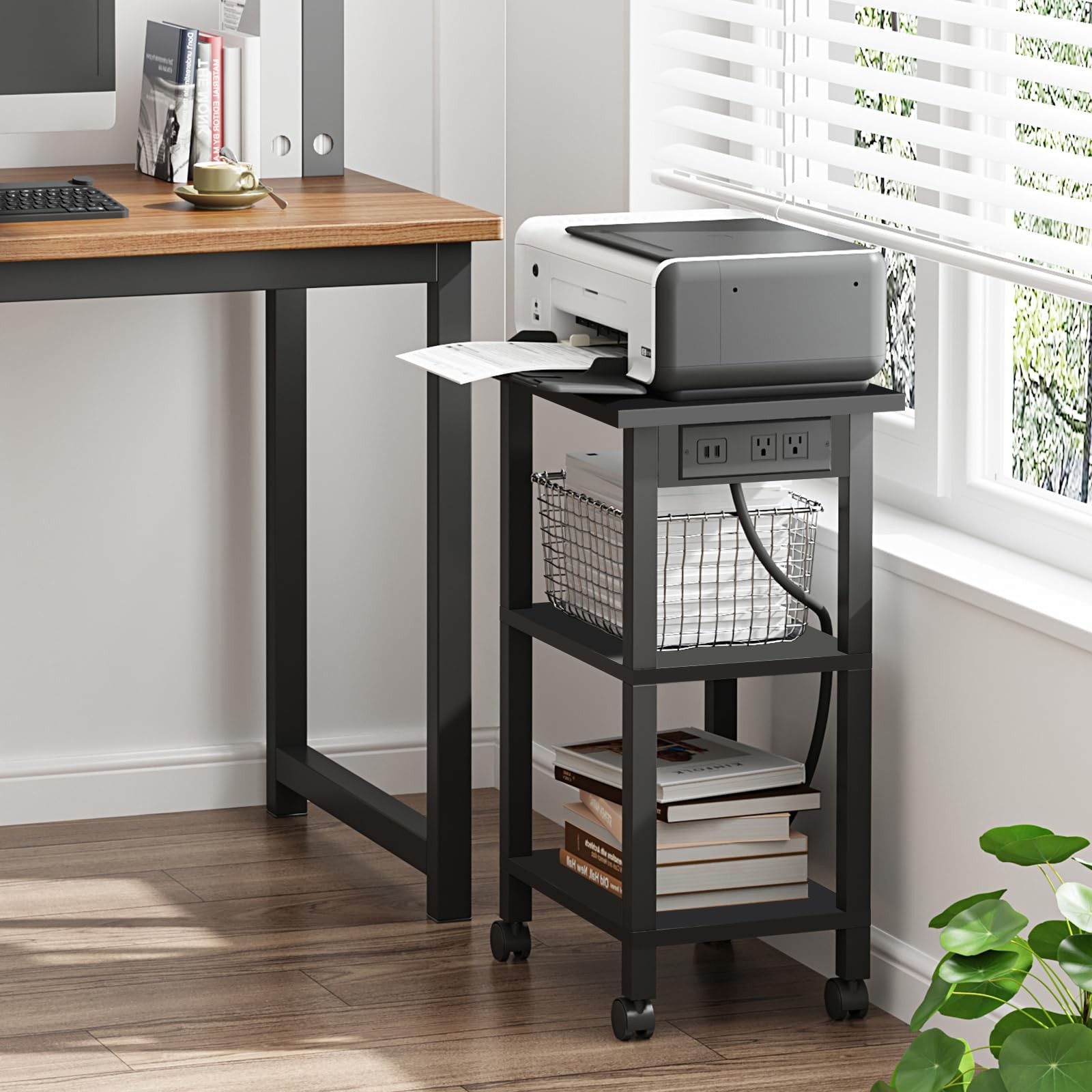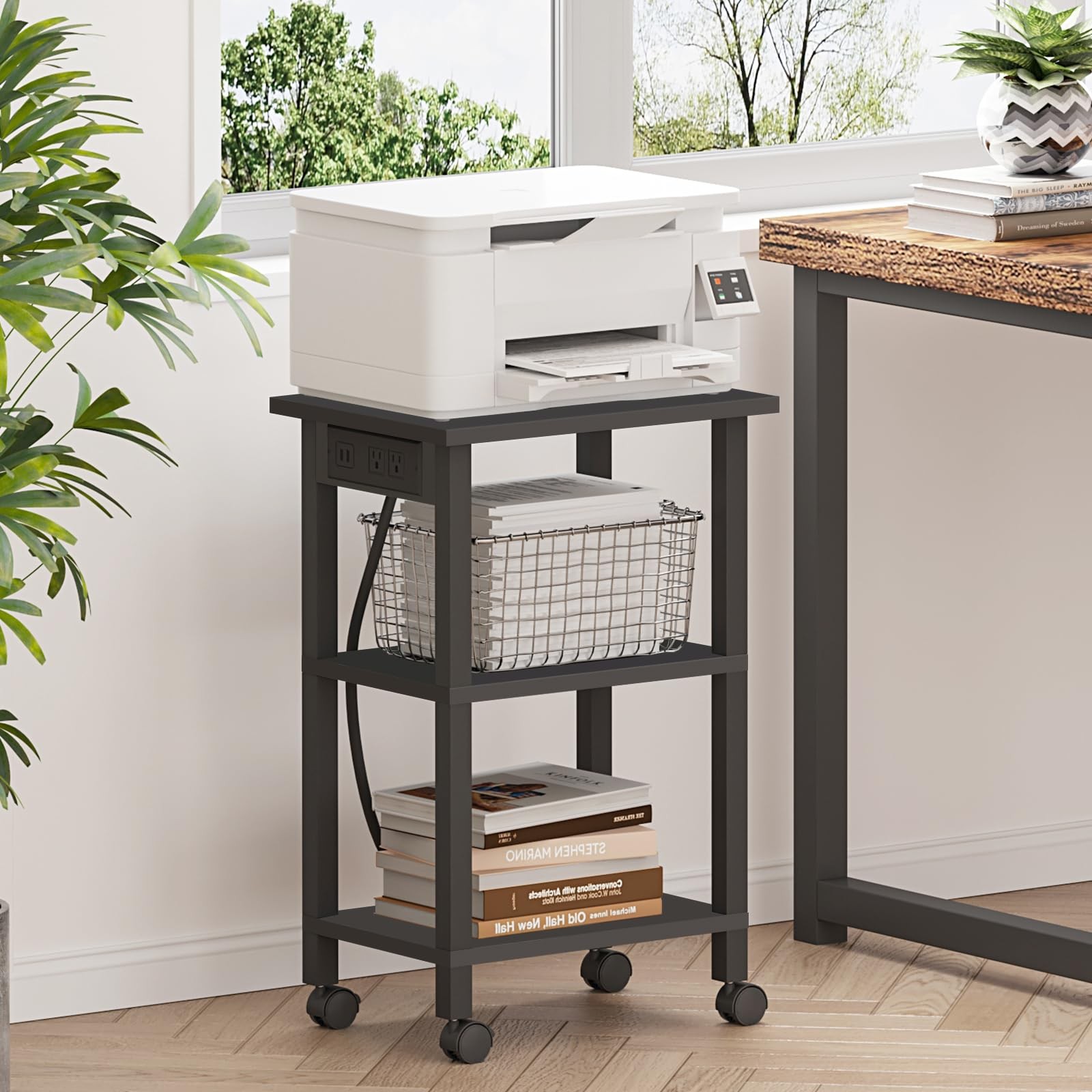 3 Tier Printer Stand, Rolling Printer Cart with Power Outlets and USB Ports, ...
