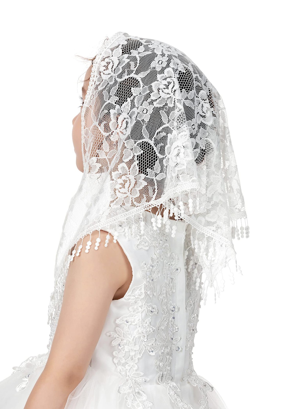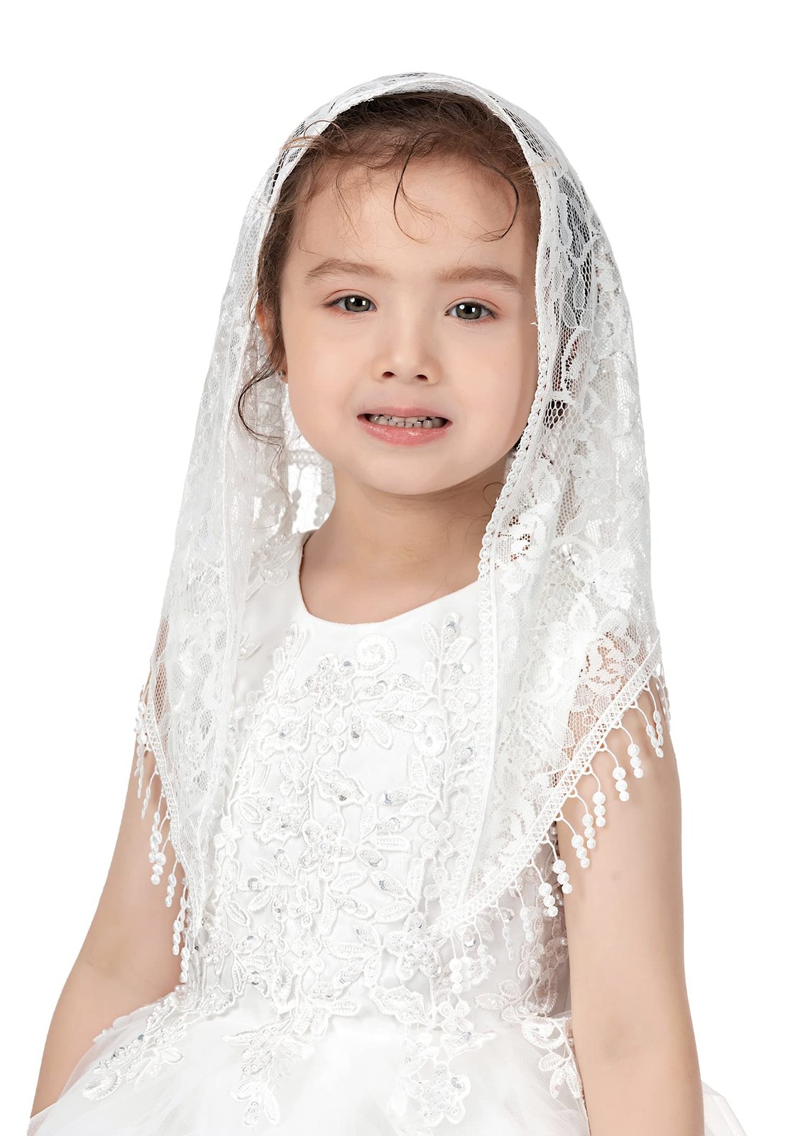 Girls Triangle First Communion Lace Chapel Veil, Mantilla, Catholic Baptism Mass