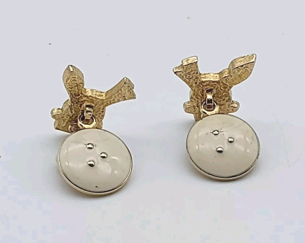 Vtg Avon Christmas Earrings Enamel Snowman Dangly Pierced Gold Tone White Red