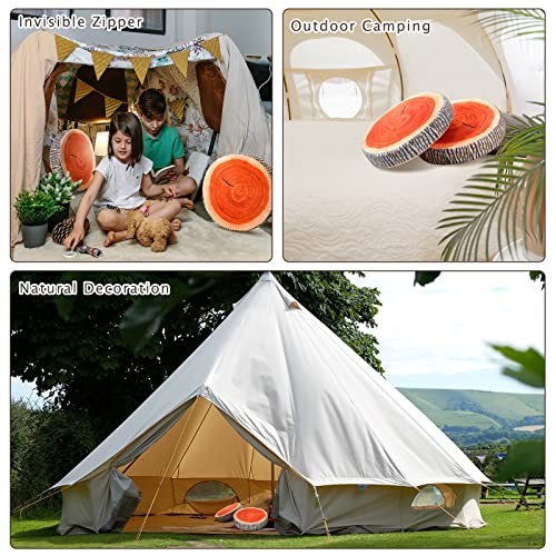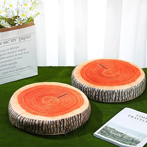 2 Pcs Round Throw Pillow Decorative Wood Slice Floor Cushion 3D Vintage