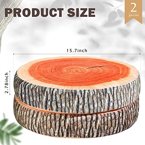 как выглядит 2 Pcs Round Throw Pillow Decorative Wood Slice Floor Cushion 3D Vintage фото