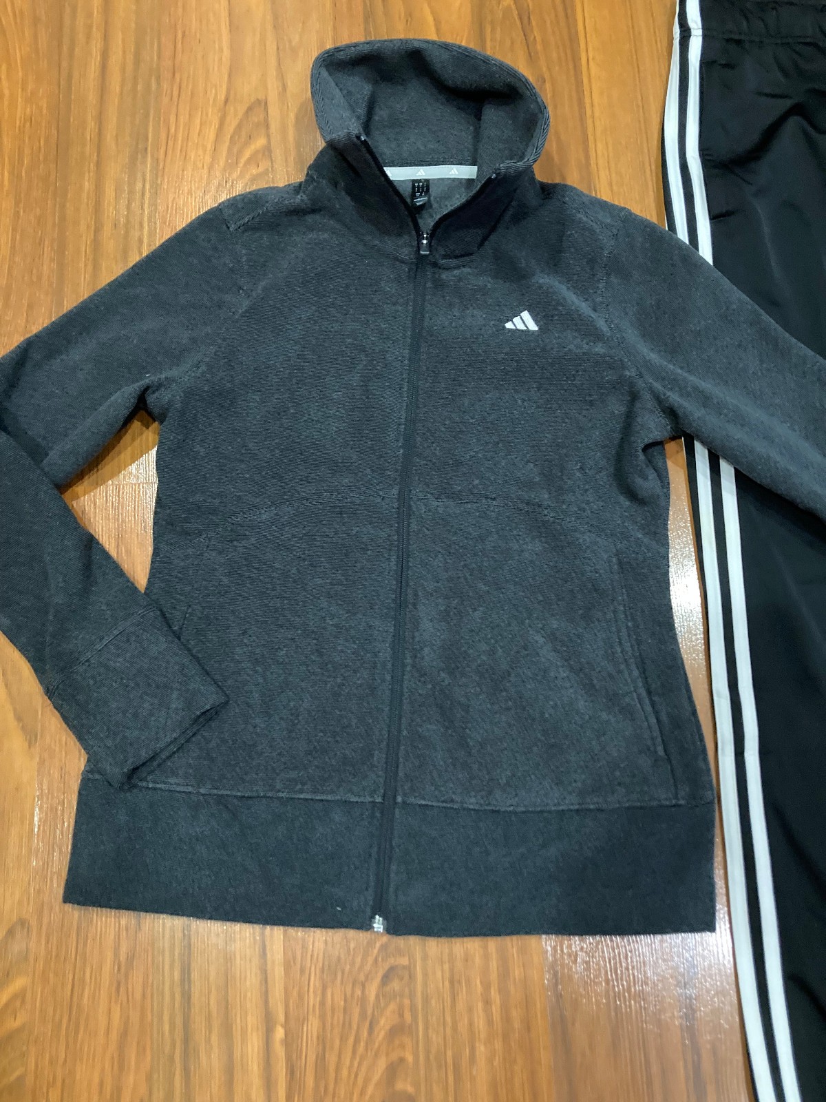 как выглядит adidas Womens 2pc Set Tracksuit Black/Gray Fleece Jacket Pants Size S New фото