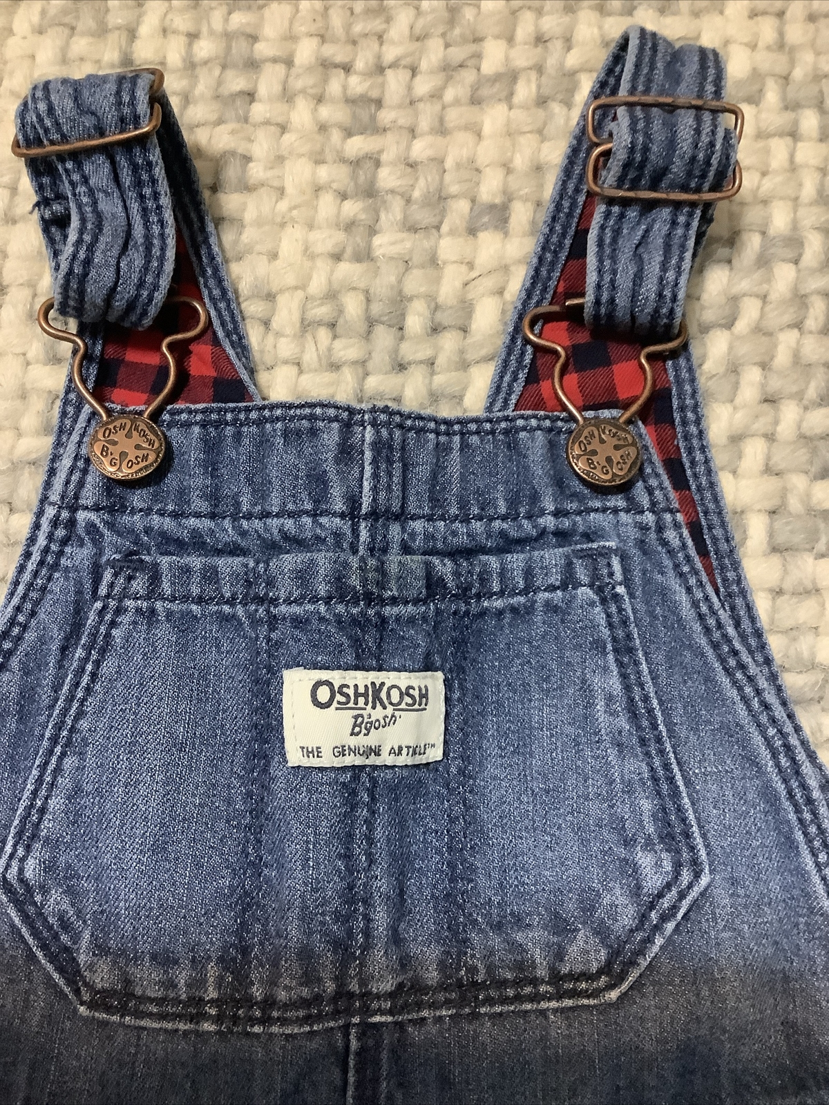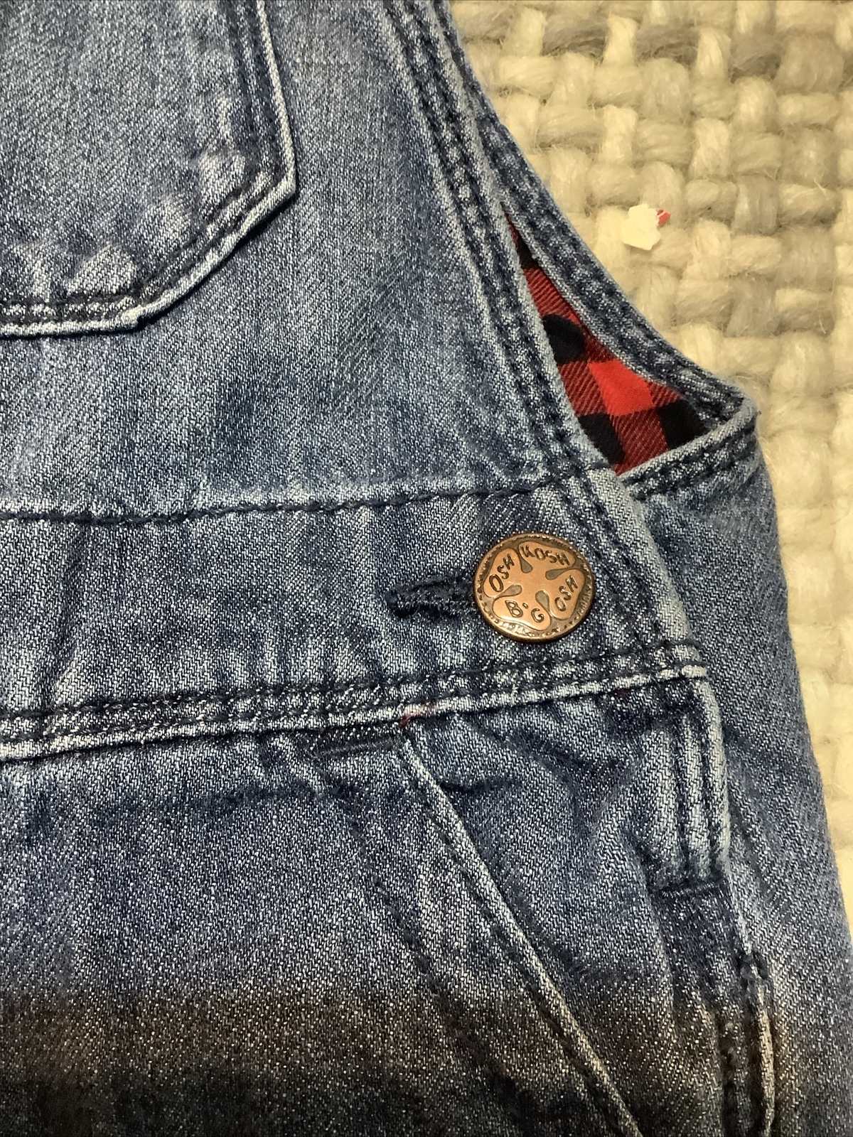 как выглядит Oshkosh Overalls Buffalo Plaid Flannel Cuffs Dark Wash Denim Girls 3T Vestbak фото