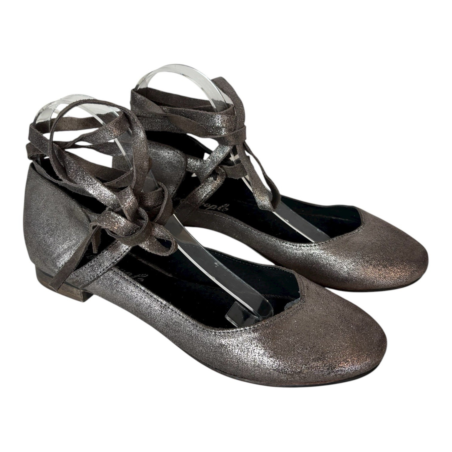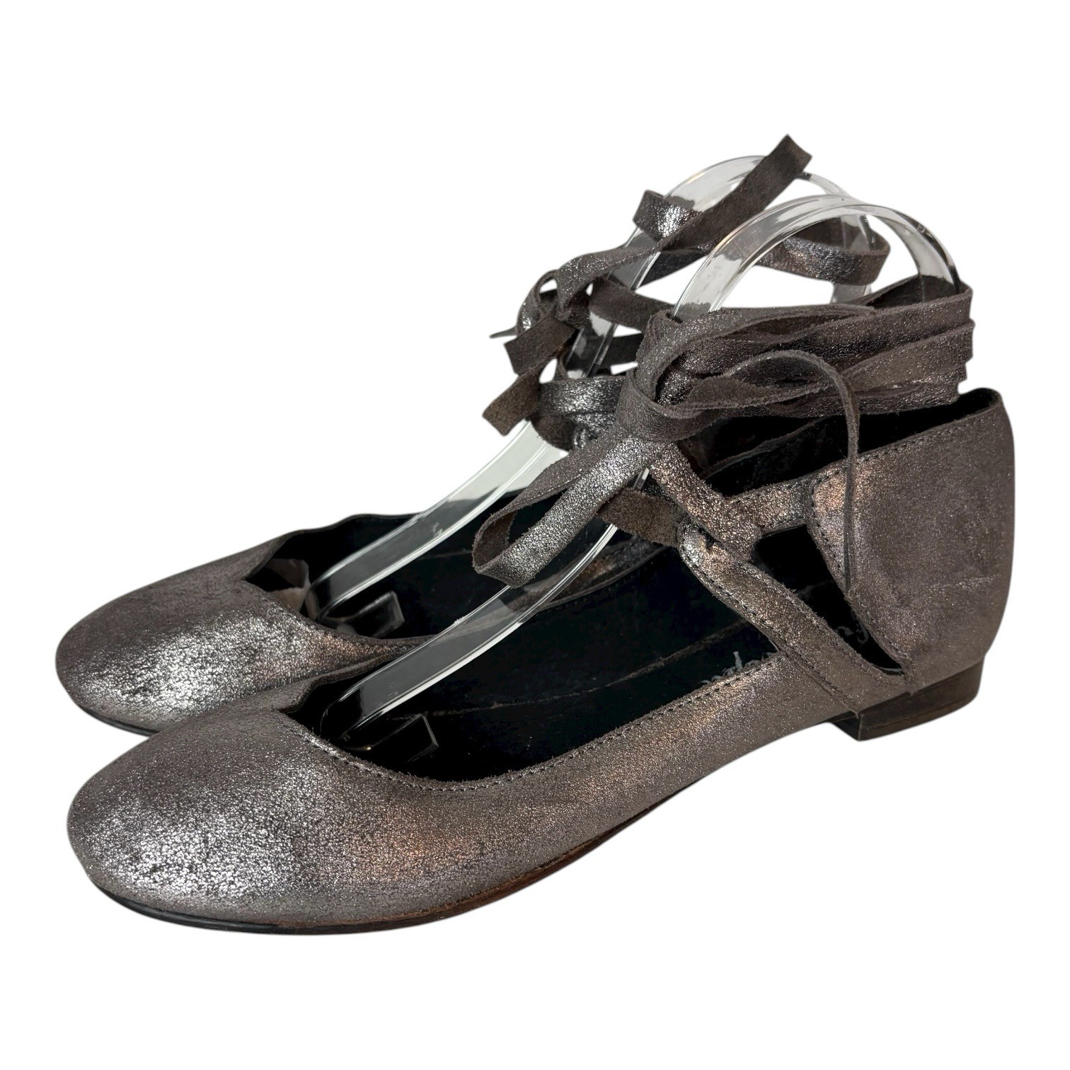 Free People Atlas Metallic Leather Lace Up Ballet Flats Mary Jane US 10 EU 41