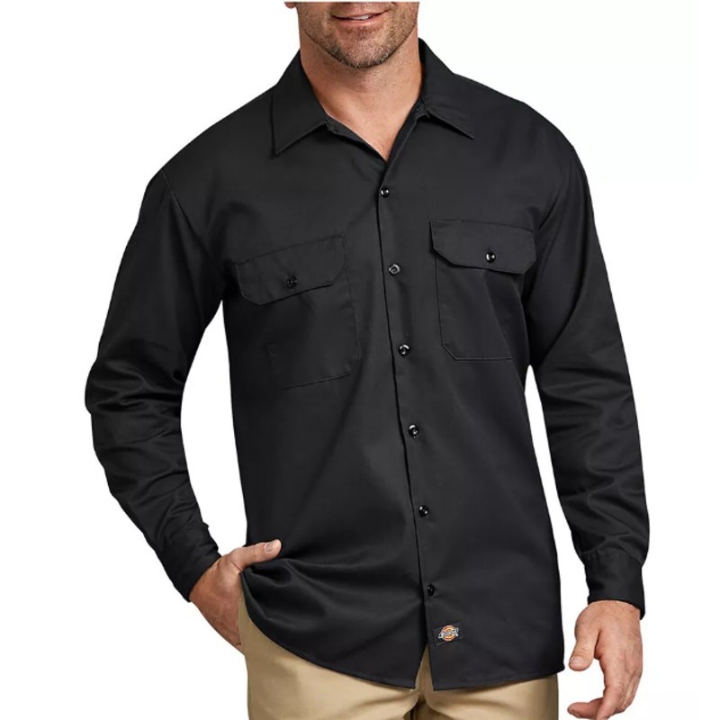 как выглядит New Dickies Mens 2XL Original Fit Button Up Shirt Black Cotton Blend Long Sleeve фото