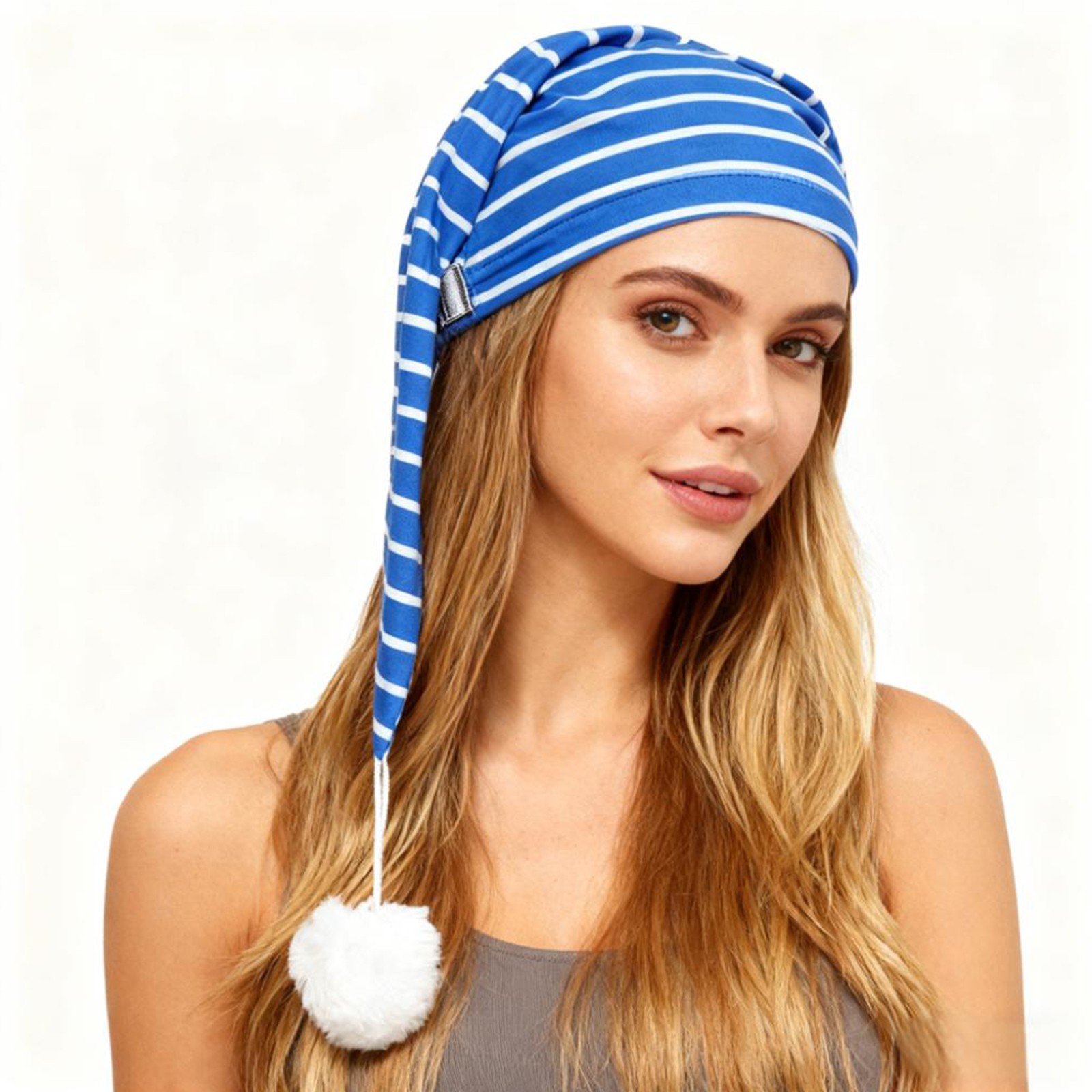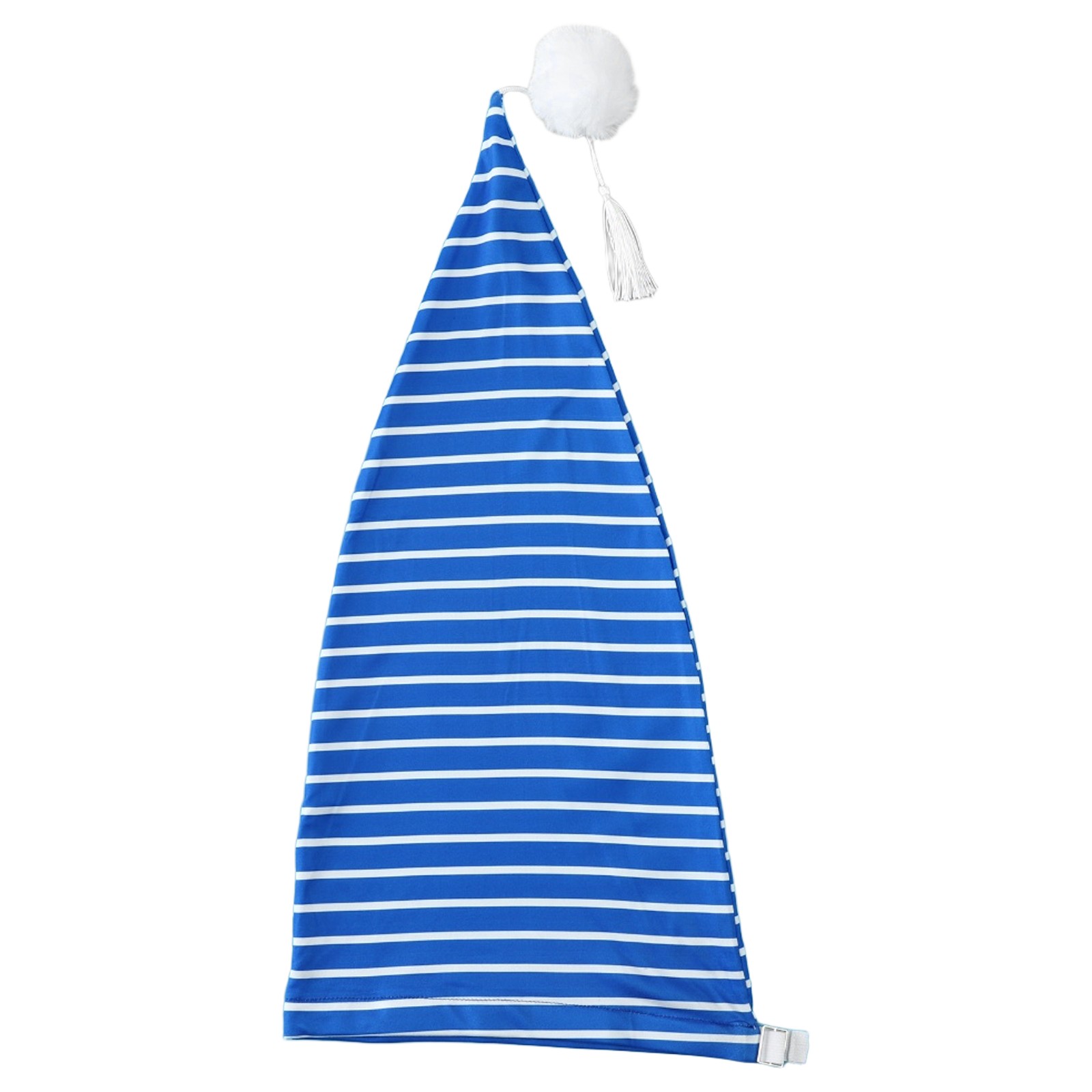 Unisex Striped Christmas Cap Night Sleeping Cap Pointed Cap w/Pompom Ball Tassel