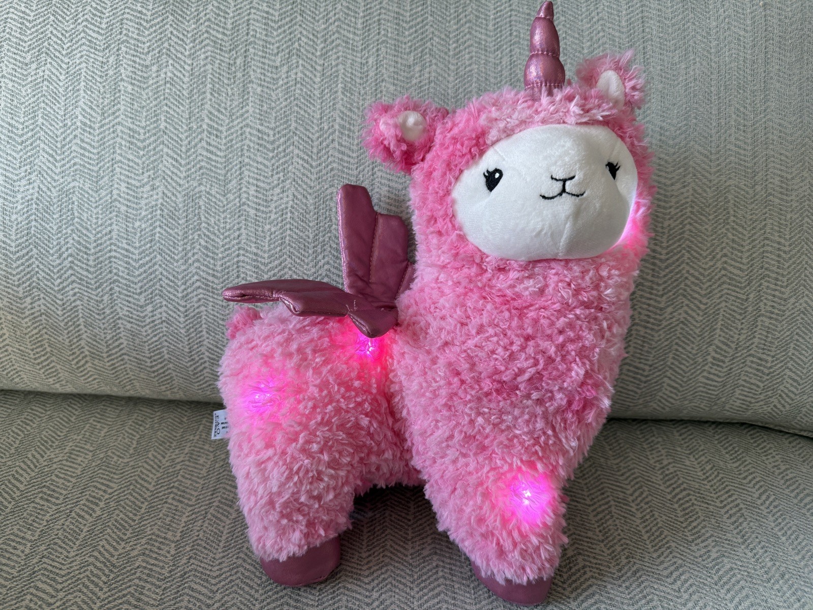 как выглядит FAO Schwarz Glow Brights Plush LED Sound Pink Llamacorn 15" Stuffed Animal TF фото
