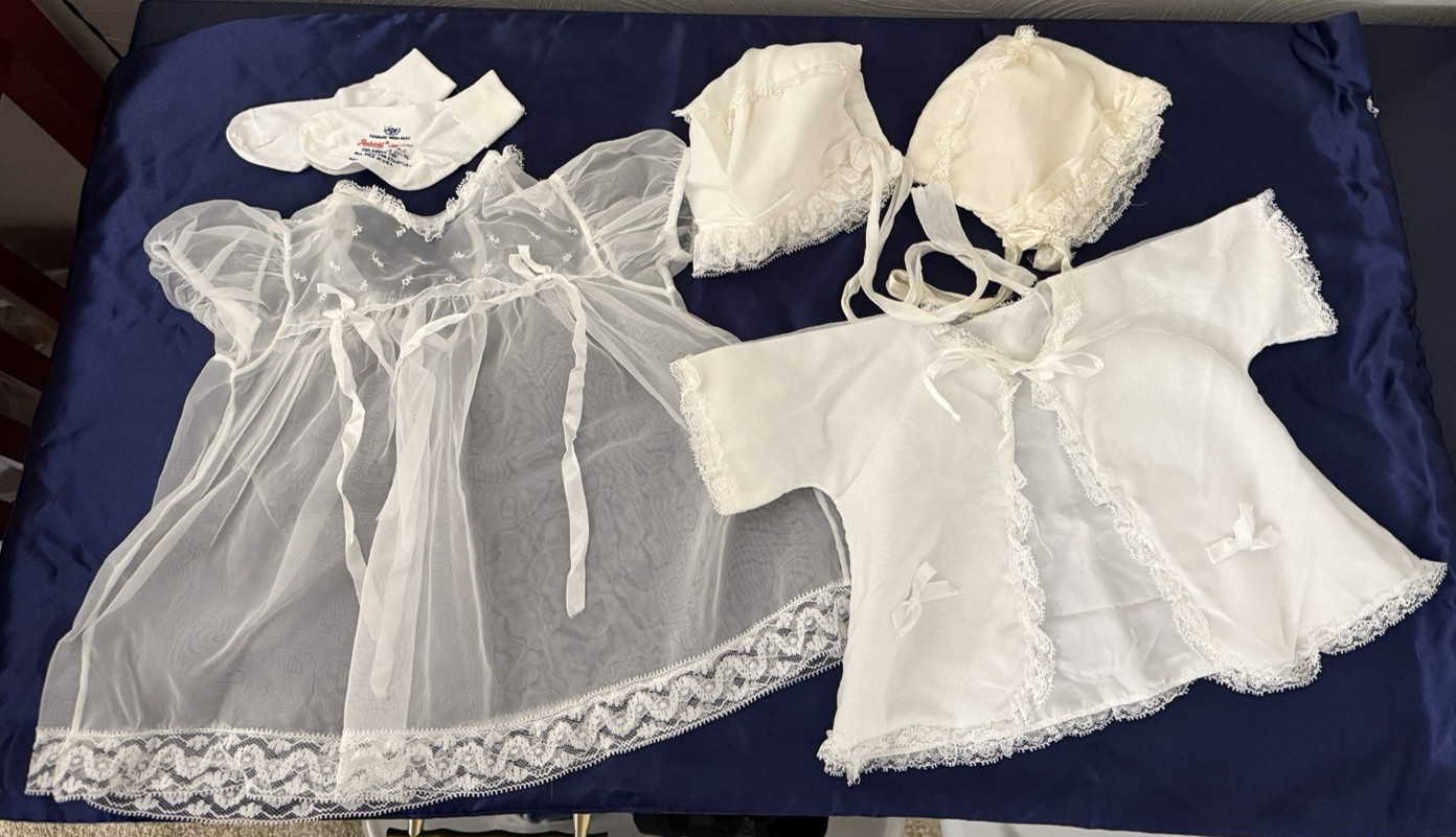 Vtg 1960's Baby Boy Girl Christening Gown Baptism Dress Lace Heirloom Bundle Lot