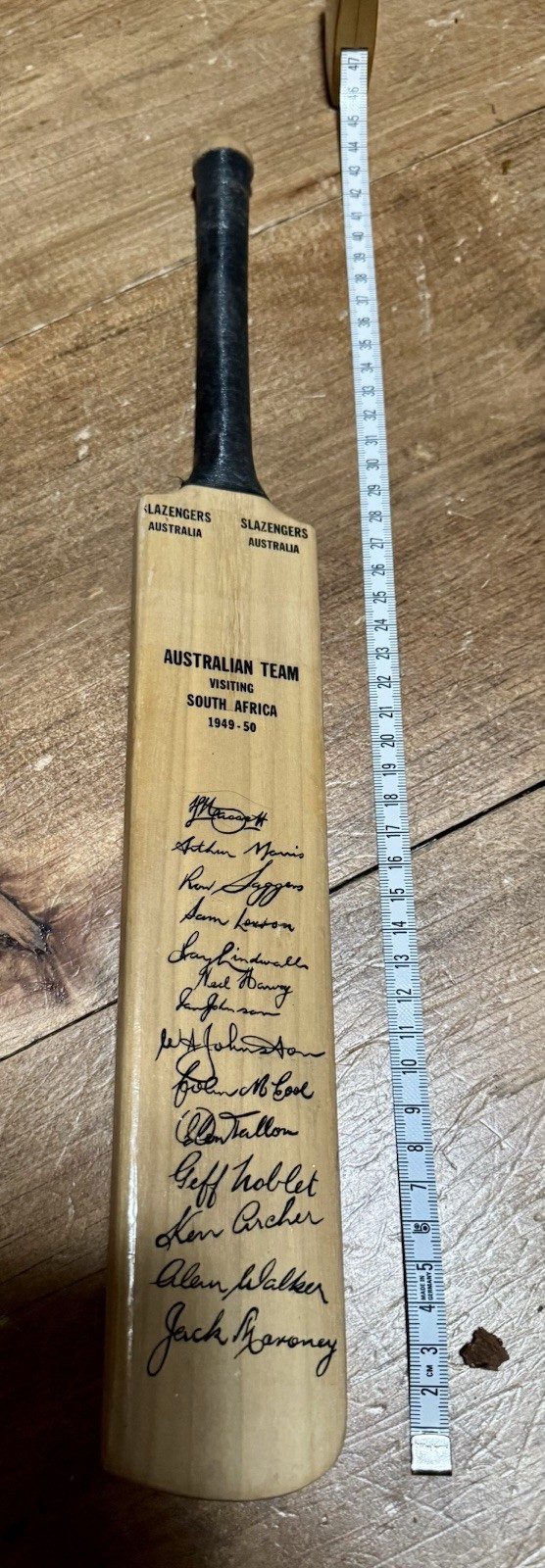 Mini Cricket bat Signed by Australian Cricket team 1949-1950 In South Africa