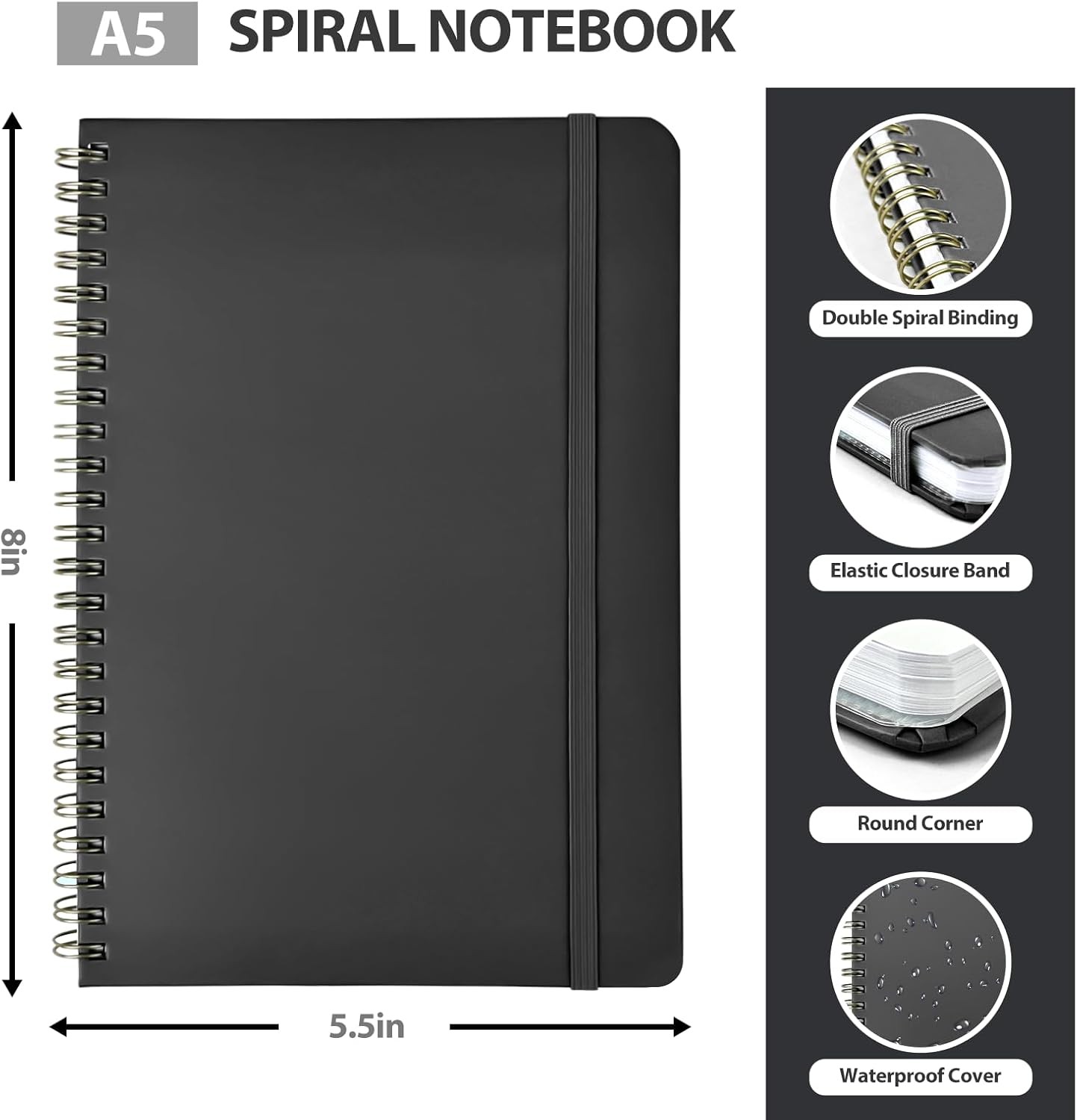Journaling Notebooks, A5 Lined Spiral Notebook for Women Men, 146 BLACK