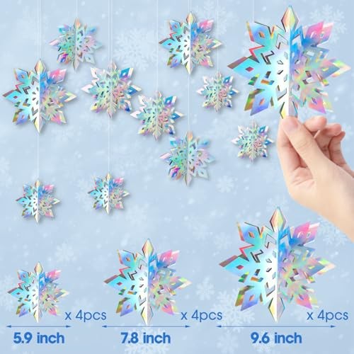 12Pcs Winter Snowflake Ornaments - 3D Large Hanging Snowflakes Iridescent