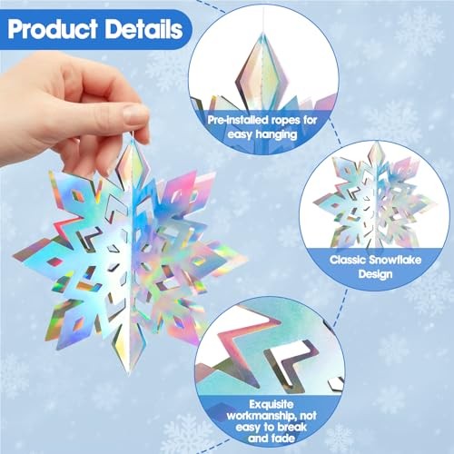 • 12Pcs Winter Snowflake Ornaments - 3D Large Hanging Snowflakes Iridescent
