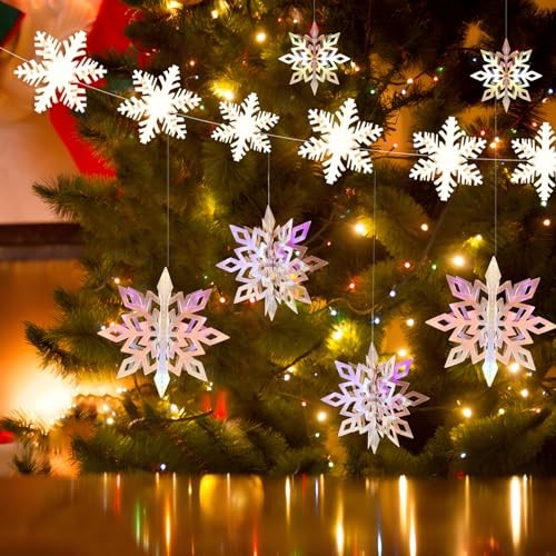 24 Pcs Winter Christmas Hanging Snowflake Decorations, 12PCS Hanging 3D