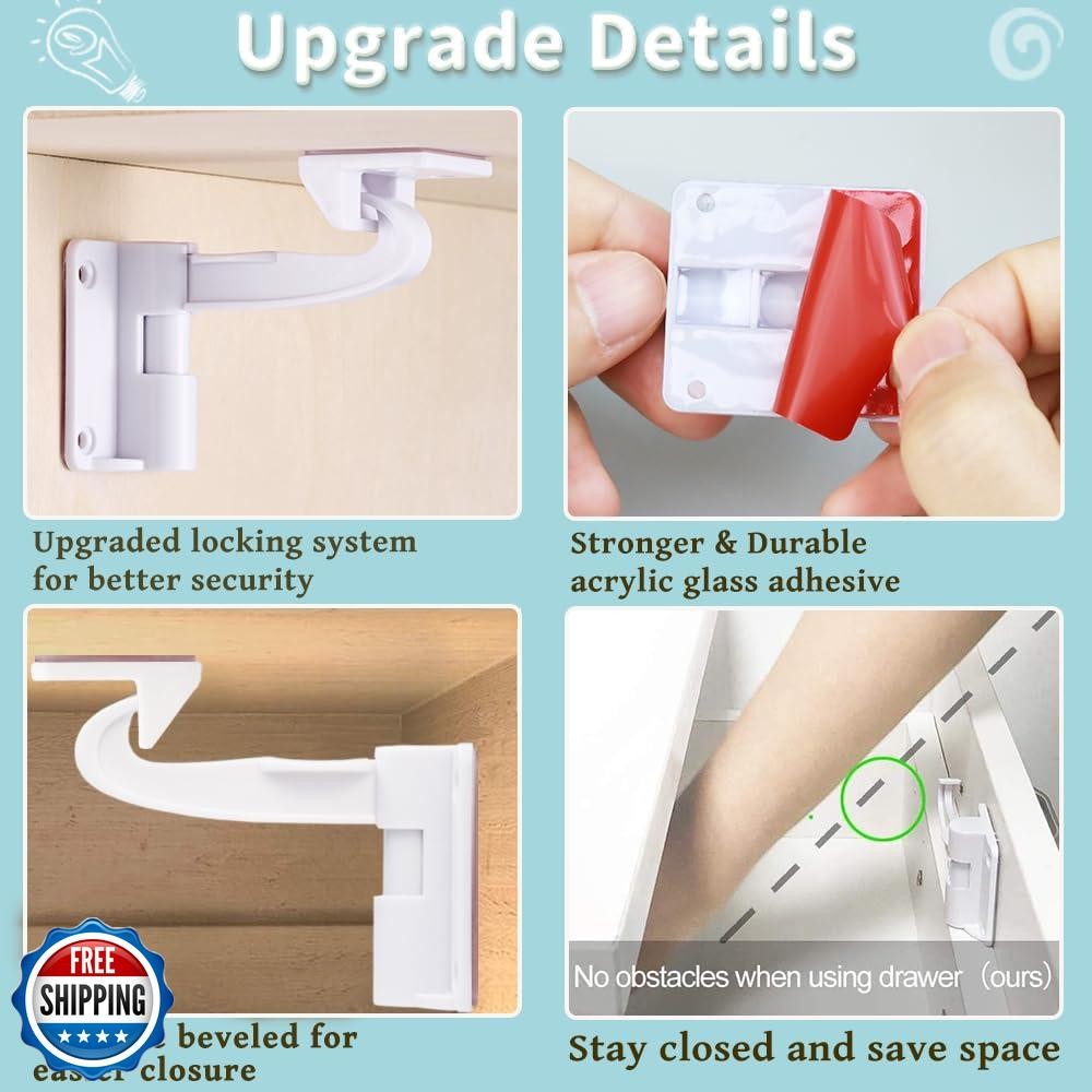 Invisible Baby Proofing Cabinet Latch Locks 12 Pack - No Drilling or Tools