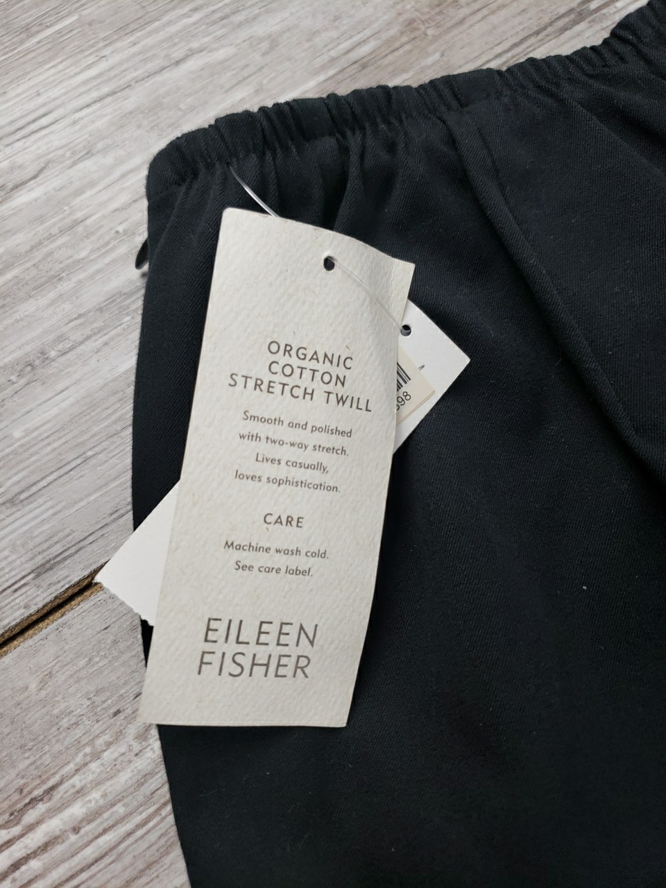 New Eileen Fisher Black Slim Ankle Pant L Side Zip Organic Cotton Stretch Twill
