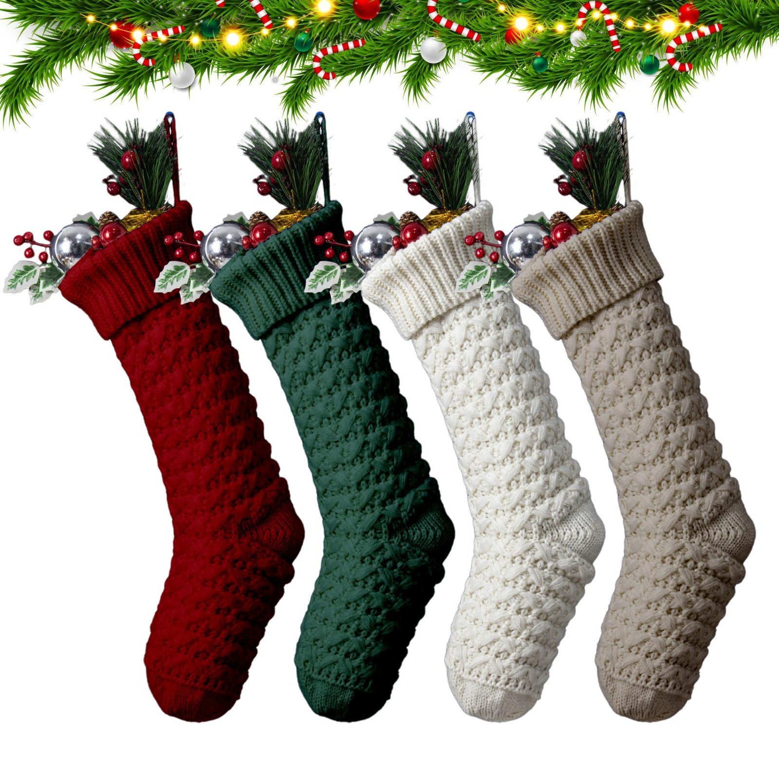 Christmas Knit Stockings 18In Classic Xmas Decorations for Family