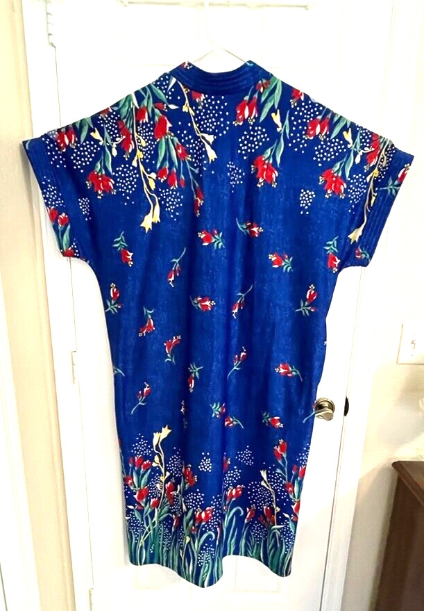 EUC Women's Kimona Short Sleeved Nightgown/Robe, Blue Floral Sz L