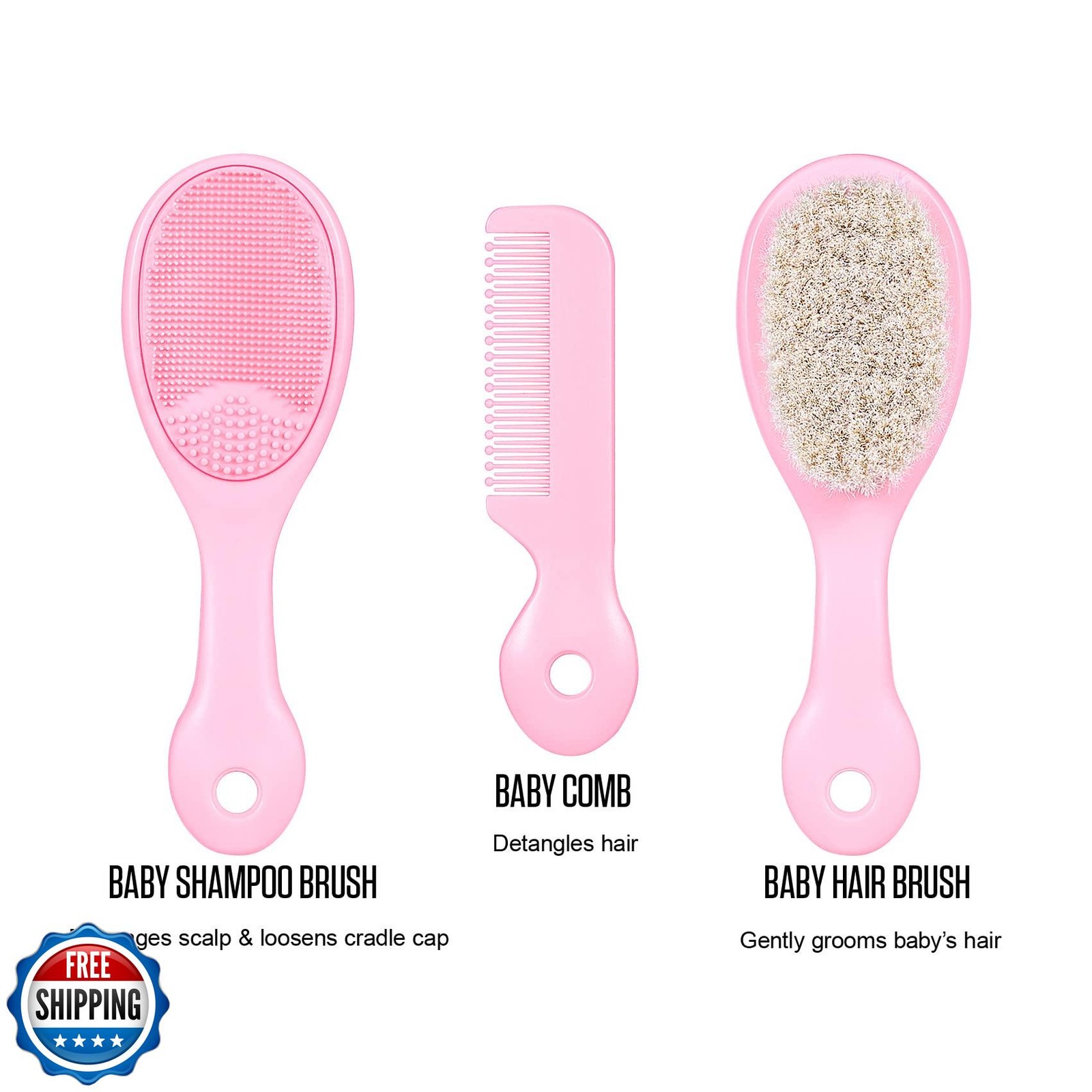 BRADYS HOUSE - 3 Piece Baby Hair Brush and Comb Set for Newborns and Toddlers