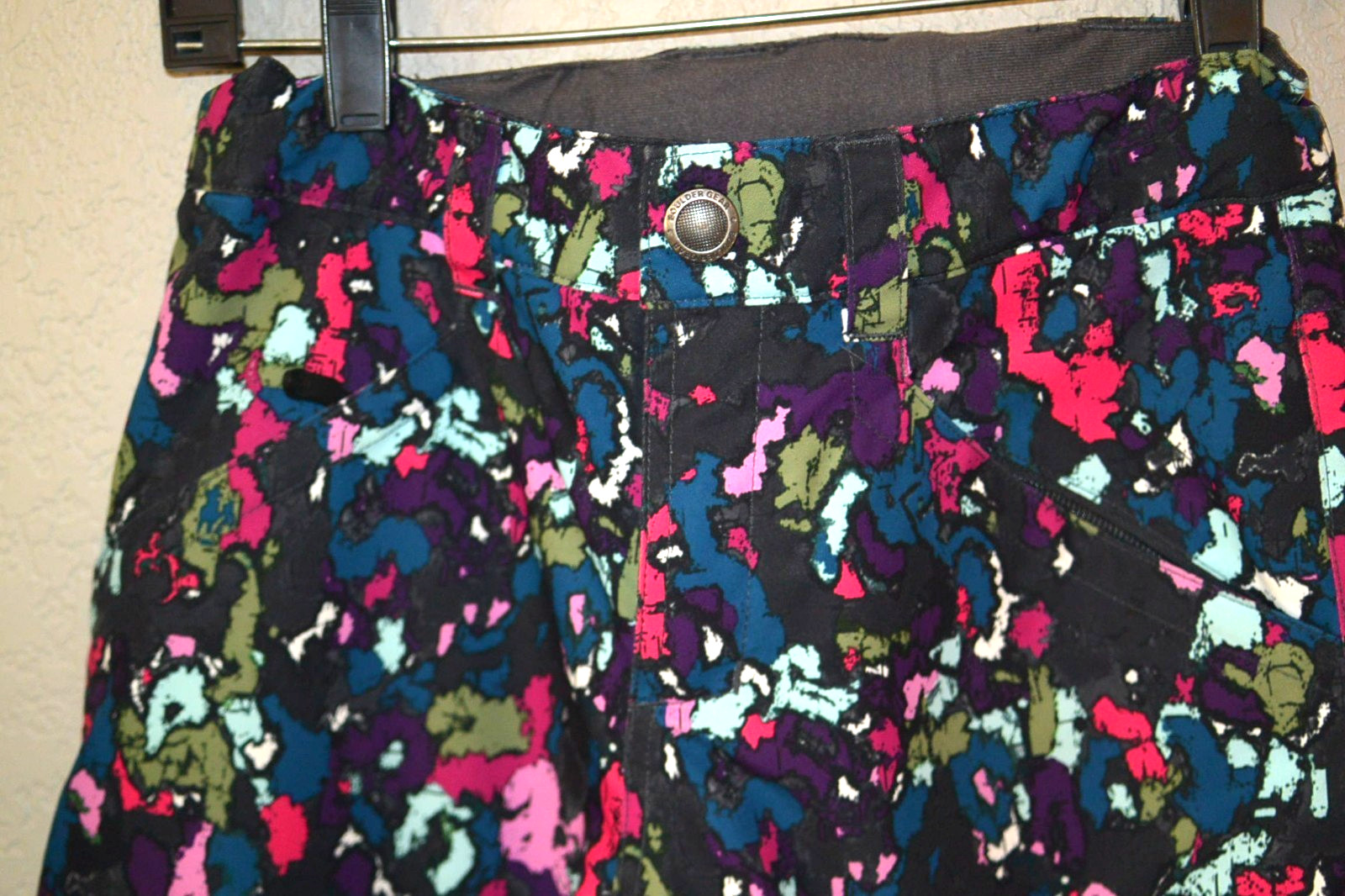 BOULDER GEAR SKI/SNOWBOARD PANTS Girls/Youth size MED black multi-colored EUC