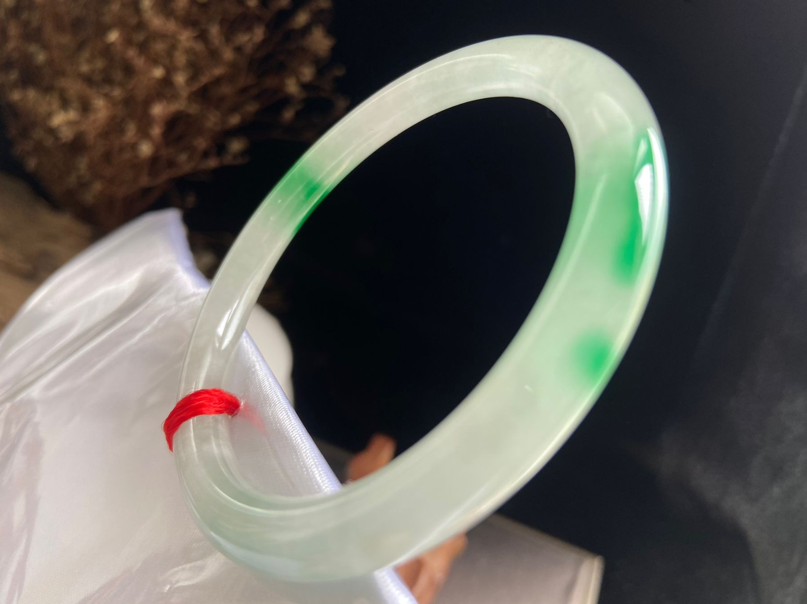 как выглядит Certified Natural Grade AAA Ice Burmese Green Jade jadeite bracelet bangle 57mm фото