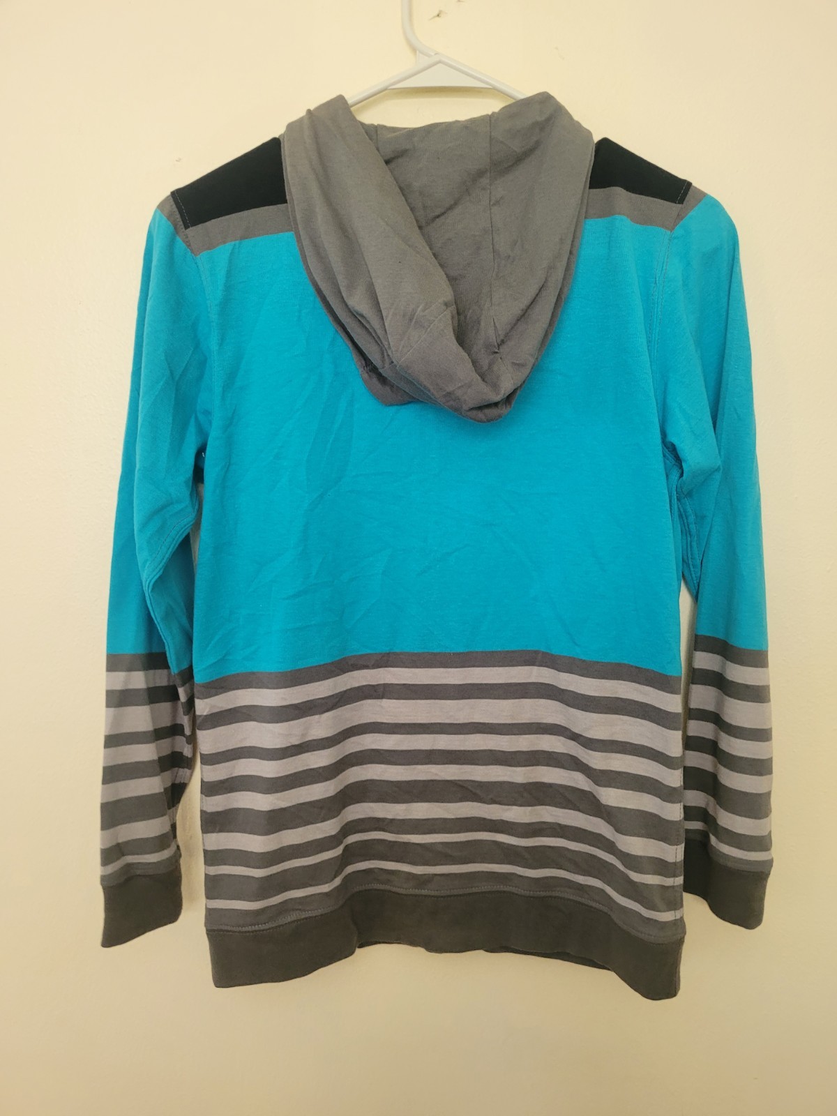 New Quiksilver Striped Zip Full Hoodie Jacket Youth Cyan Fleece Boys M 12