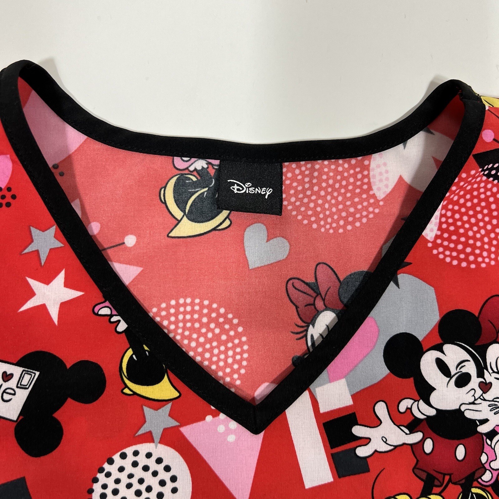 Disney's Mickey and Minnie Mouse Scrub Top LOVE Performance Stretch Red Size M