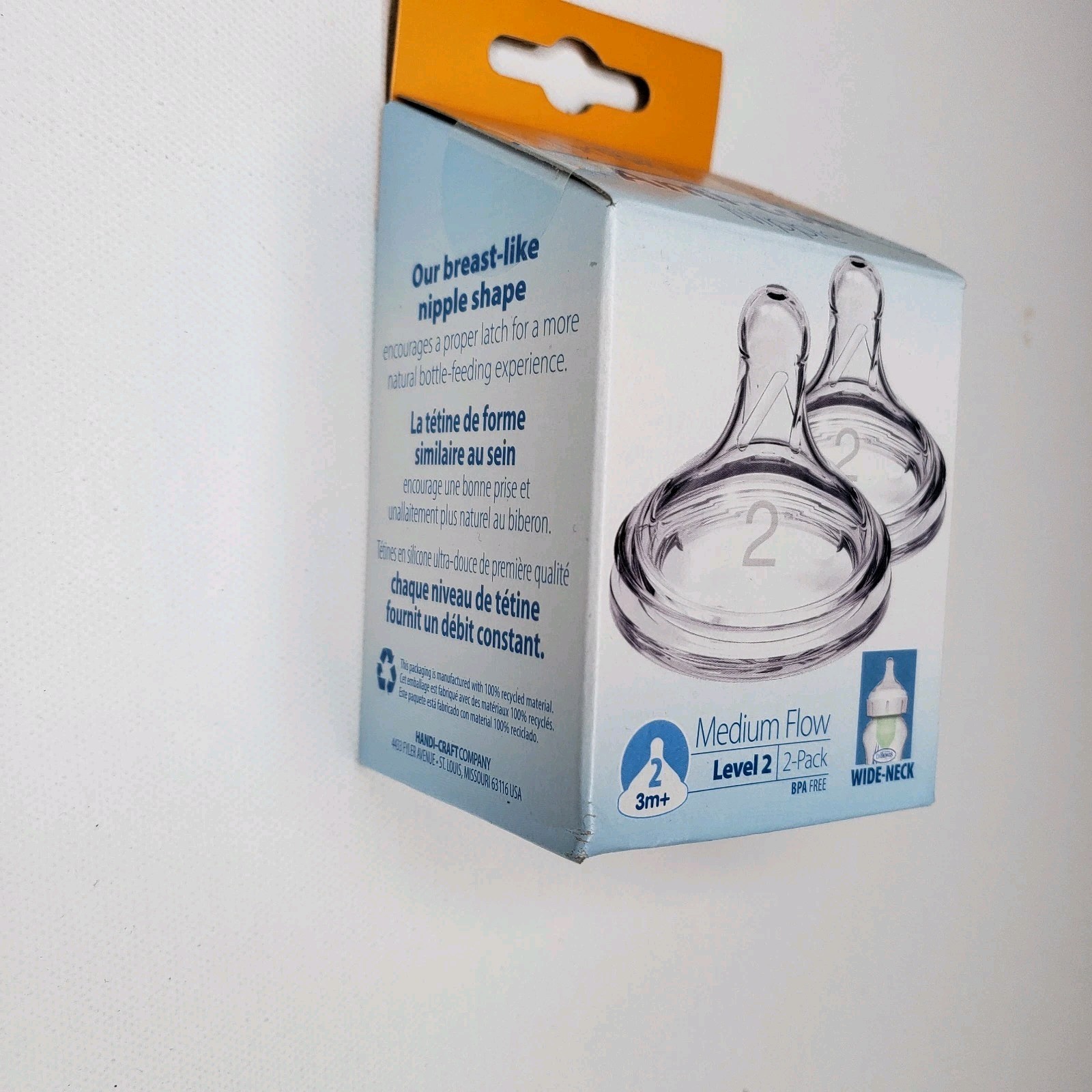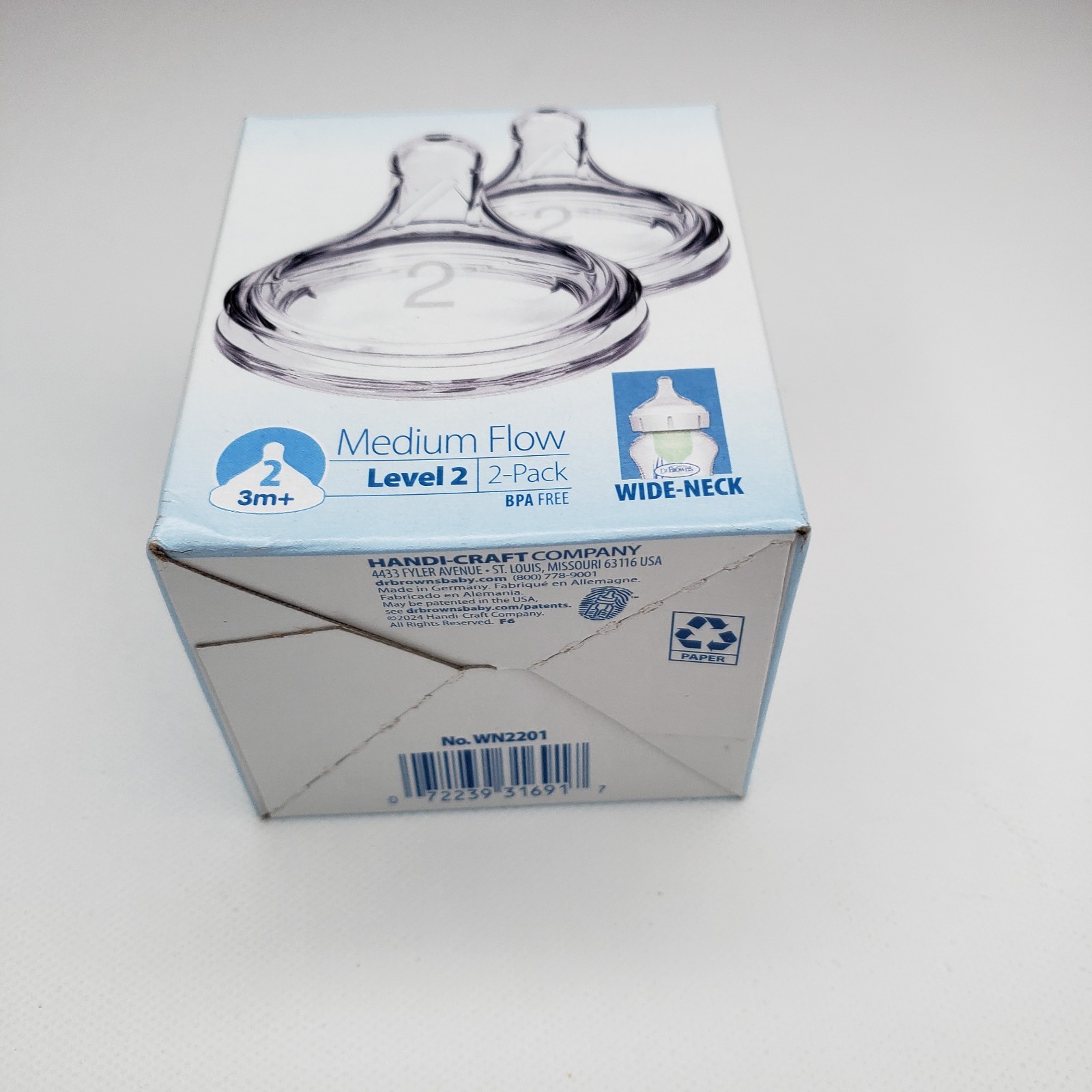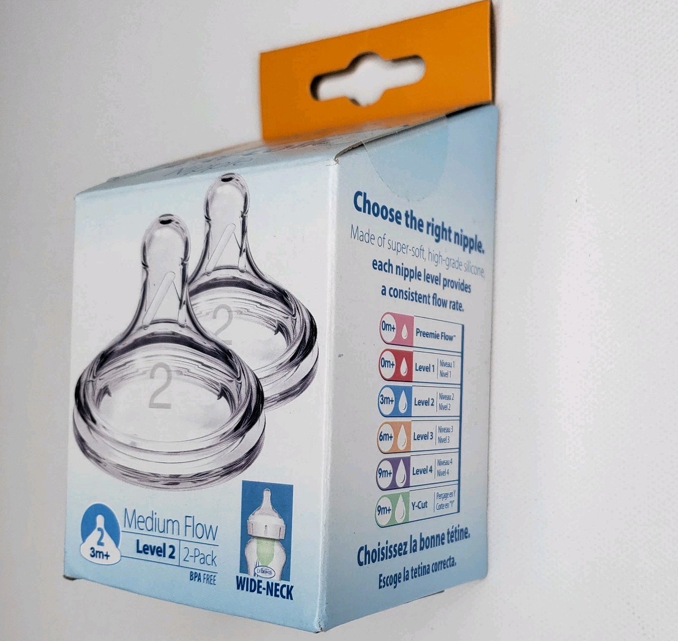 Dr. Brown's Level 2 Wide-Neck Silicone Nipple Medium Flow 2pk 6 Mo NEW